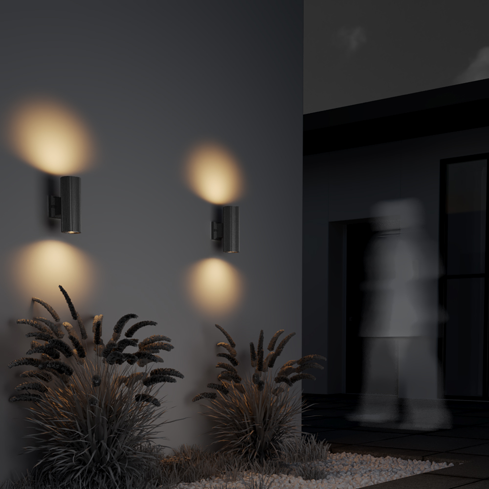 Mit kompakten Maßen (Ø 9,5 cm, Höhe 26 cm, Wandabstand 16 cm) fügt sich die Rando harmonisch in verschiedenste Außenbereiche ein. Ausgestattet mit zwei E27-Fassungen (je max. 60 W), ermöglicht sie flexible Lichtlösungen ganz nach Ihren Bedürfnissen. Dank der Schutzart IP54 ist die Leuchte gegen Staub und Spritzwasser geschützt – perfekt für den langlebigen Einsatz im Außenbereich.