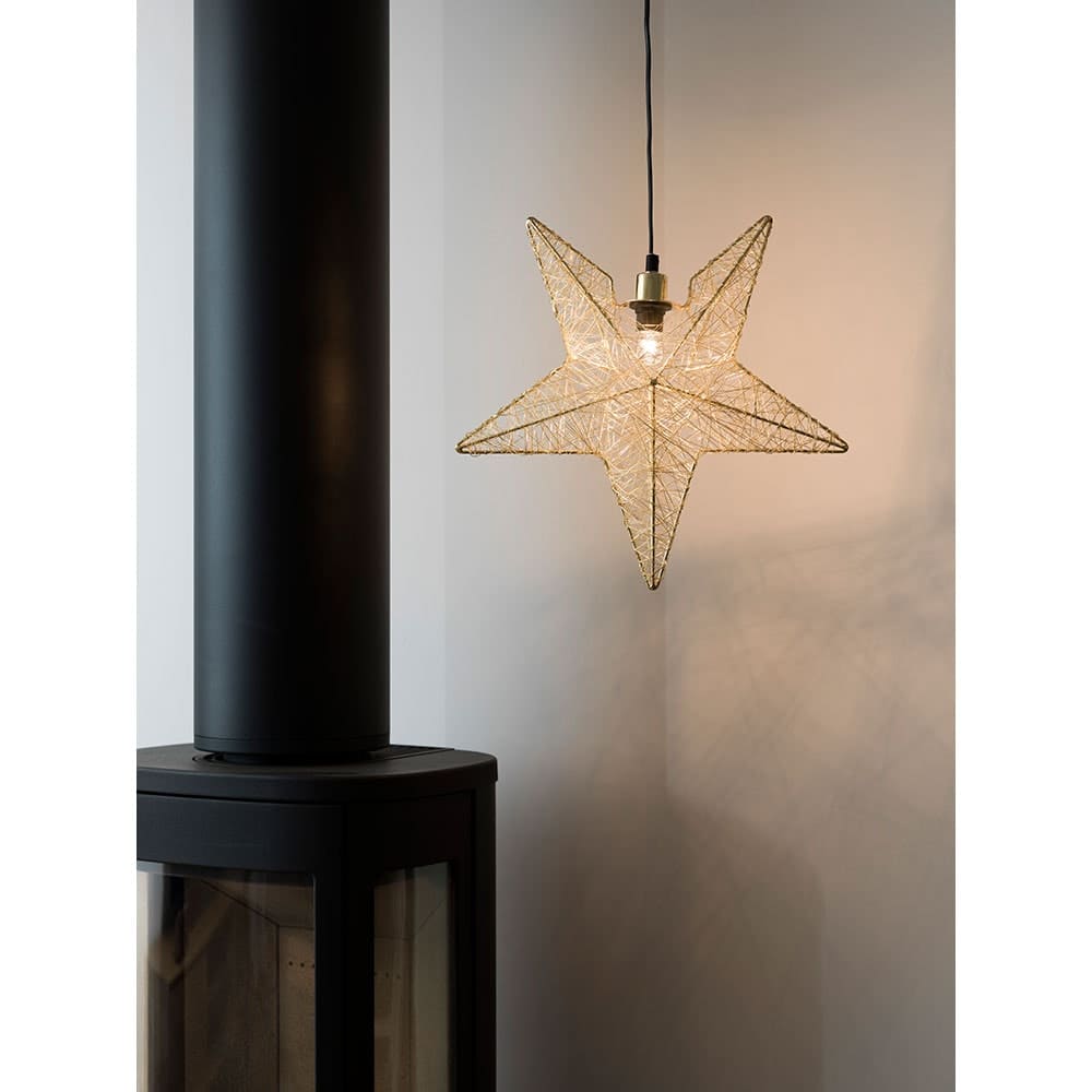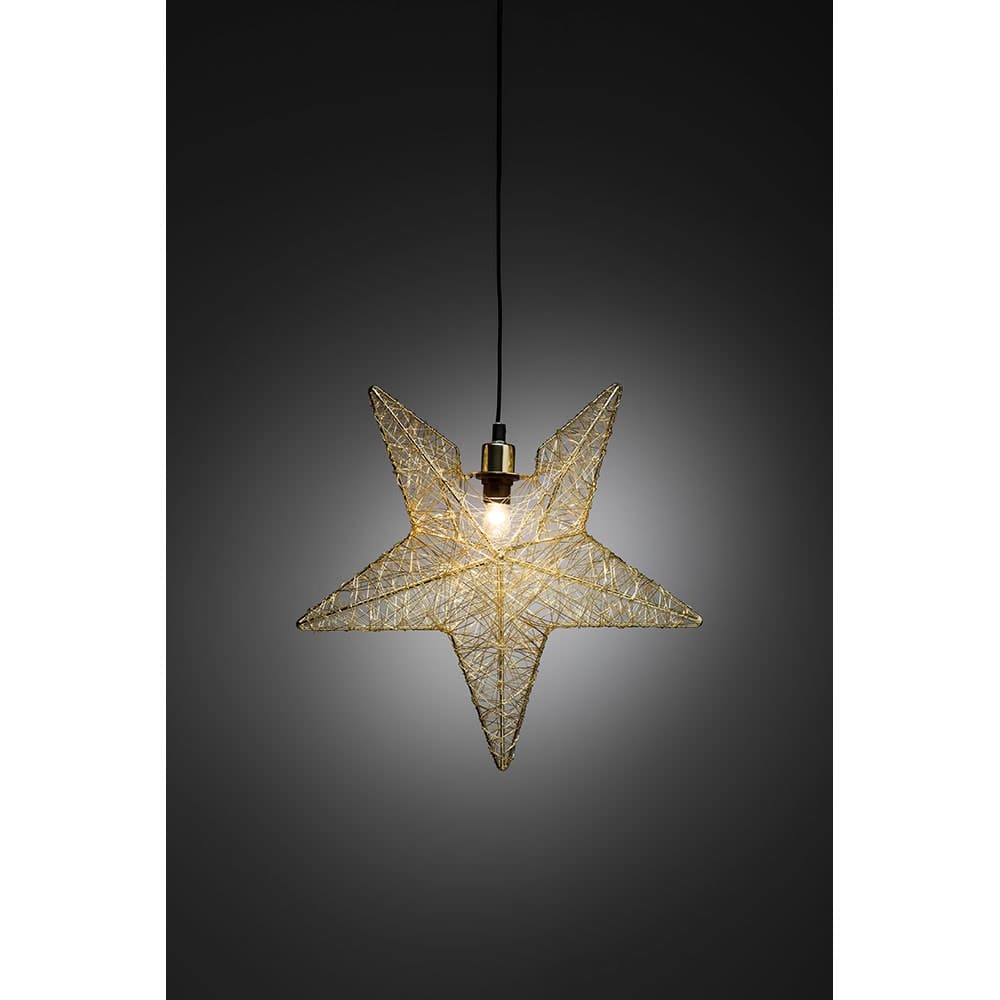 Messingfarbener Metallstern, inkl. Anschlusskabel mit an/aus Schalter, ohne Leuchtmittel, E14 Lampenhalterung, 230V, Innen, schwarzes Kabel