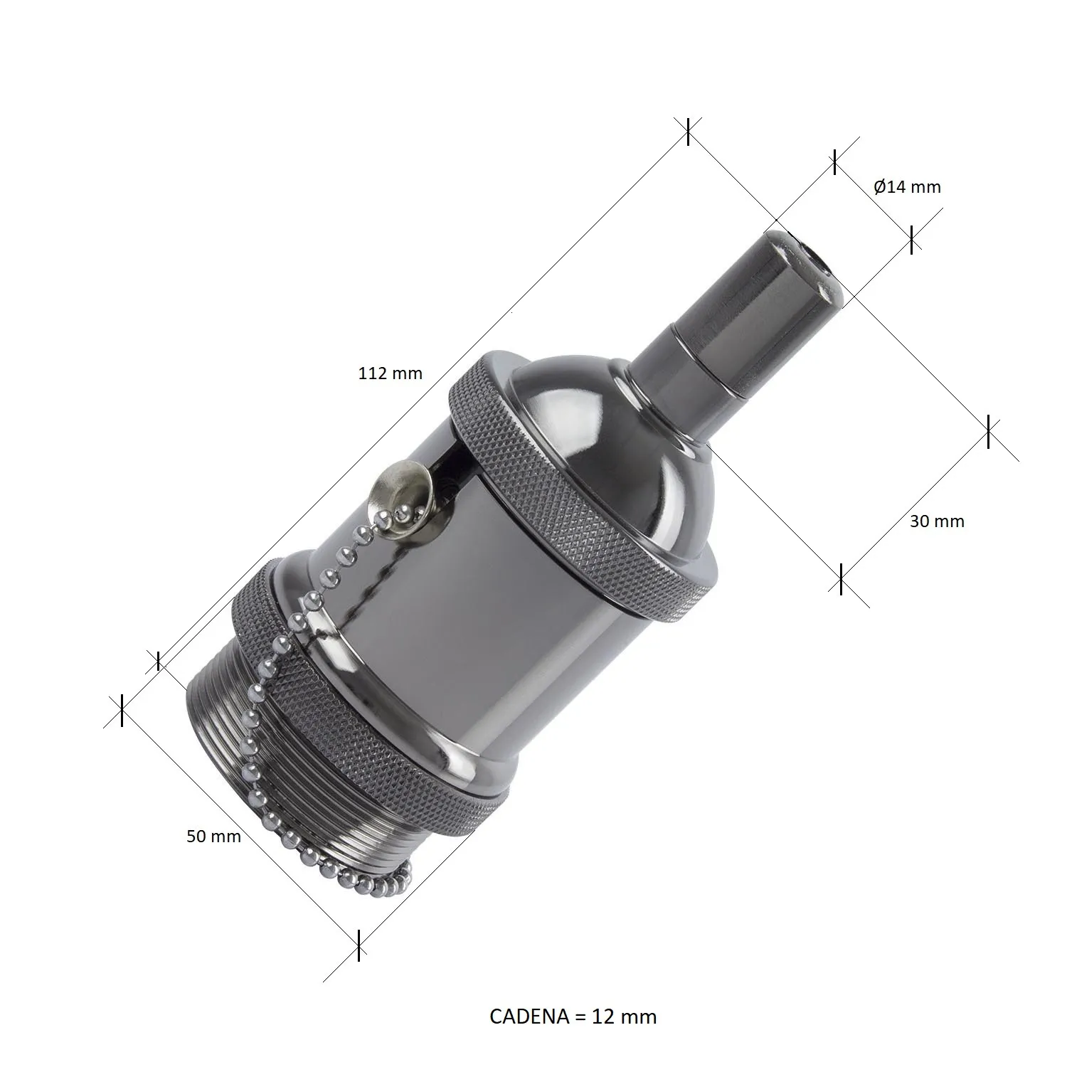 Metallisierte Lampenfassung mit Schalter für LED-Glühbirnen E27