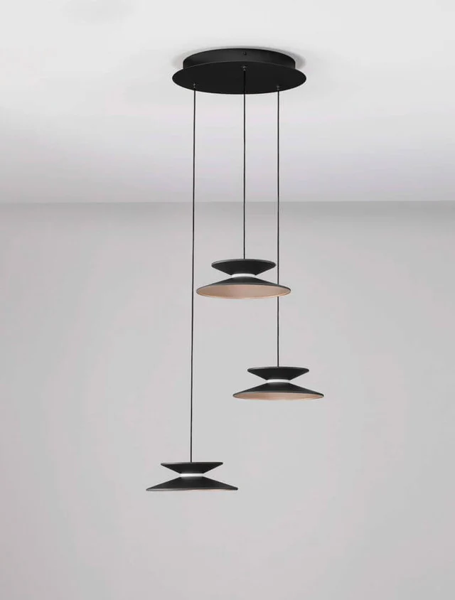 Die Morfi Pendelleuchte 3-flammig verbindet modernes Design mit einer eleganten Farbkombination aus Schwarz und Gold. Mit einem Durchmesser von 42 cm setzt sie einen stilvollen Akzent über Esstischen, Kücheninseln oder im Wohnzimmer. Die integrierten LEDs liefern warmweißes Licht mit 3000 K und sorgen für eine angenehme Atmosphäre.