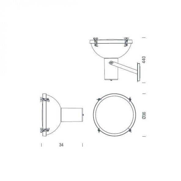Der Strahler von Le Corbusier wurde 1954 für die Beleuchtung des Gerichtshofes in Chandigarh, Indien, entworfen. Der Leuchtenkörper ist aus Aluminium, nachtblau, sand- oder mokafarben lackiert. Das gewölbte Diffusorglas ist innen sandgestrahlt. Der Baldachin und die Klemme sind matt schwarz lackiert, die Flügelmuttern und Kleinteile sind matt schwarz verchromt.