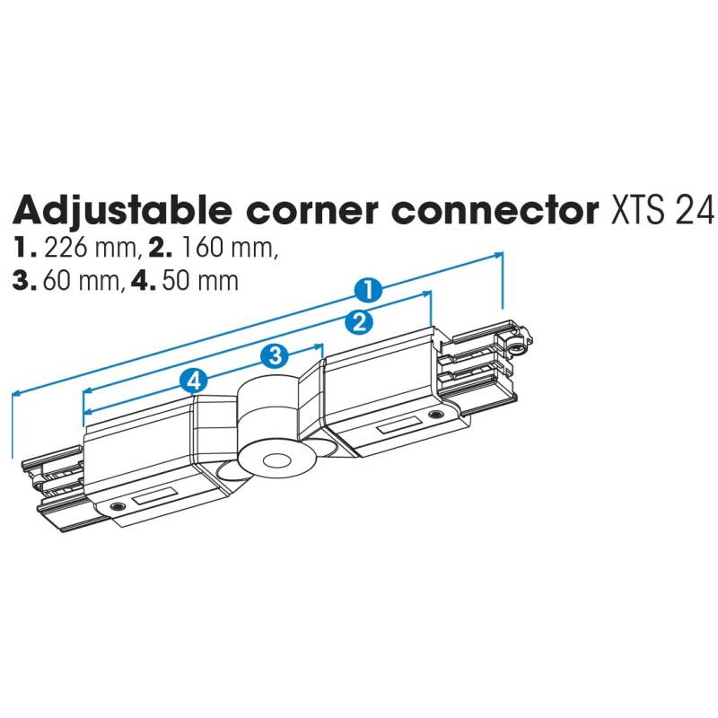 Gelenkverbinder XTS24 zum Verbinden von GLOBAL Trac Pro 3-Phasen-Stromschienen in Winkeln zwischen 60 und 300 Grad.