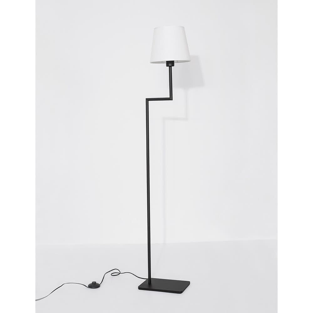 Stehlampe Petrus Schwarz, Chrom, Schirm Chintz Weiß