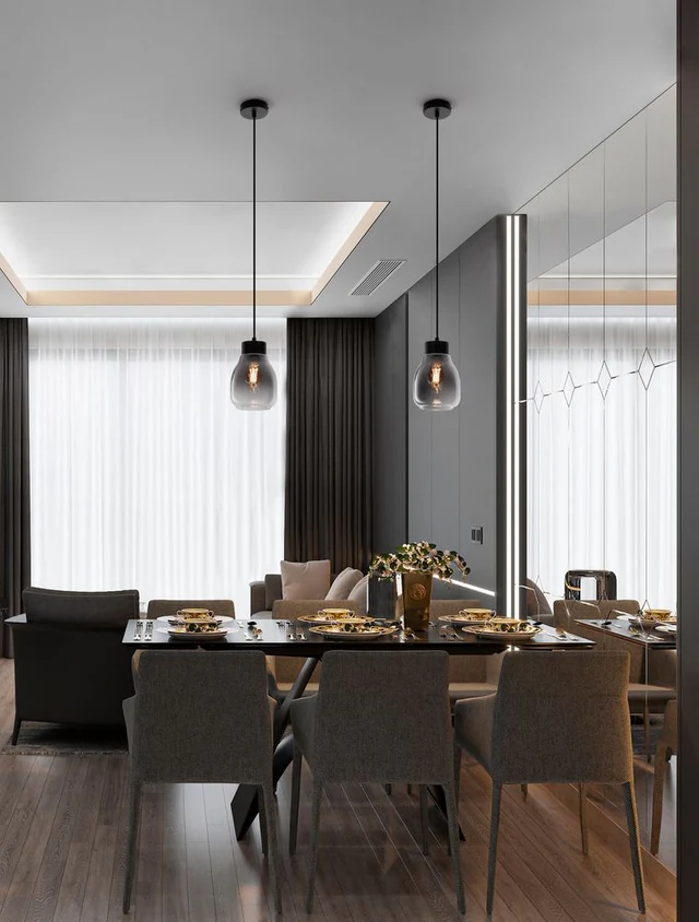 Ob über dem Esstisch, im Wohnzimmer oder in einer modernen Küche – BLACU sorgt für eine angenehme, stimmungsvolle Beleuchtung und wird zum dekorativen Mittelpunkt des Raumes.