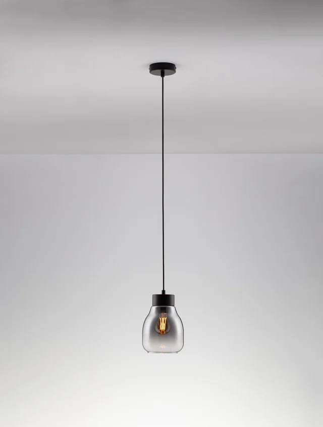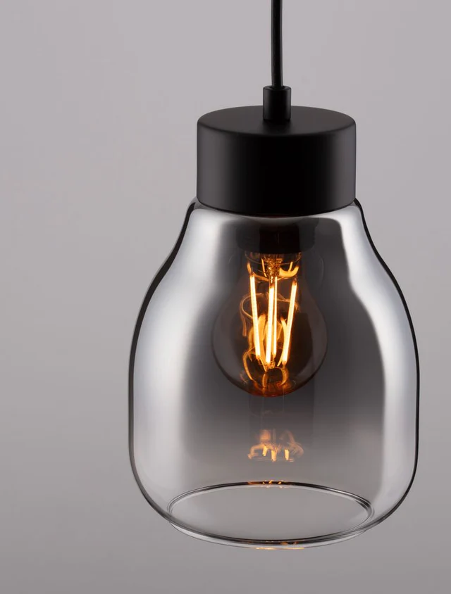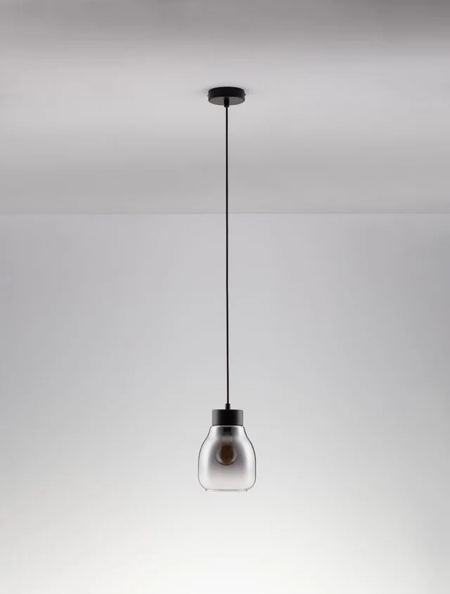 Die Nova Luce BLACU Pendelleuchte vereint elegantes Design mit einem faszinierenden Farbspiel. Ihr Glas-Lampenschirm beeindruckt durch einen sanften Farbverlauf von Schwarz über Grau bis Transparent und verleiht der Leuchte eine moderne, stilvolle Ausstrahlung.