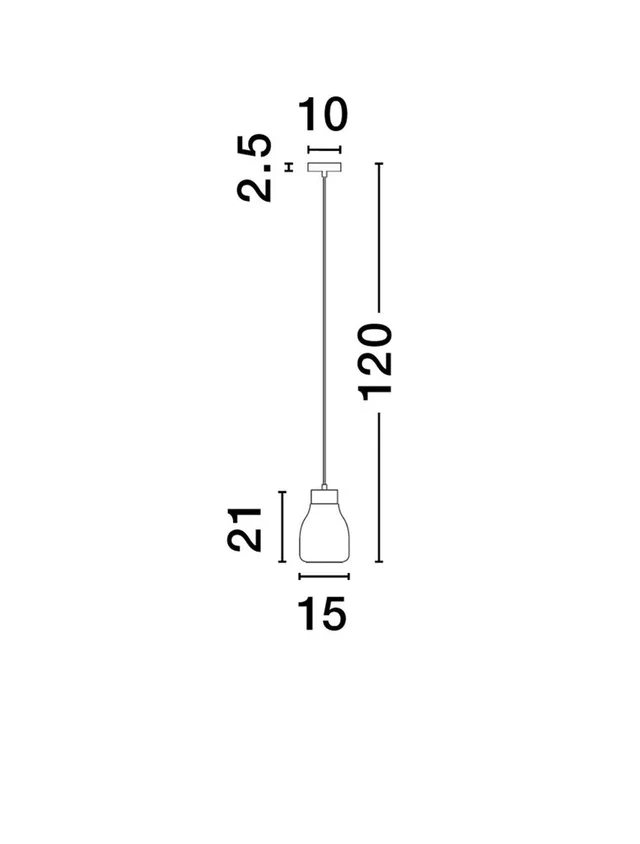 Die besondere Form des Lampenschirms setzt optische Akzente, während das schwarze Kabel und der farblich abgestimmte, längliche Metall-Baldachin das harmonische Gesamtbild abrunden.