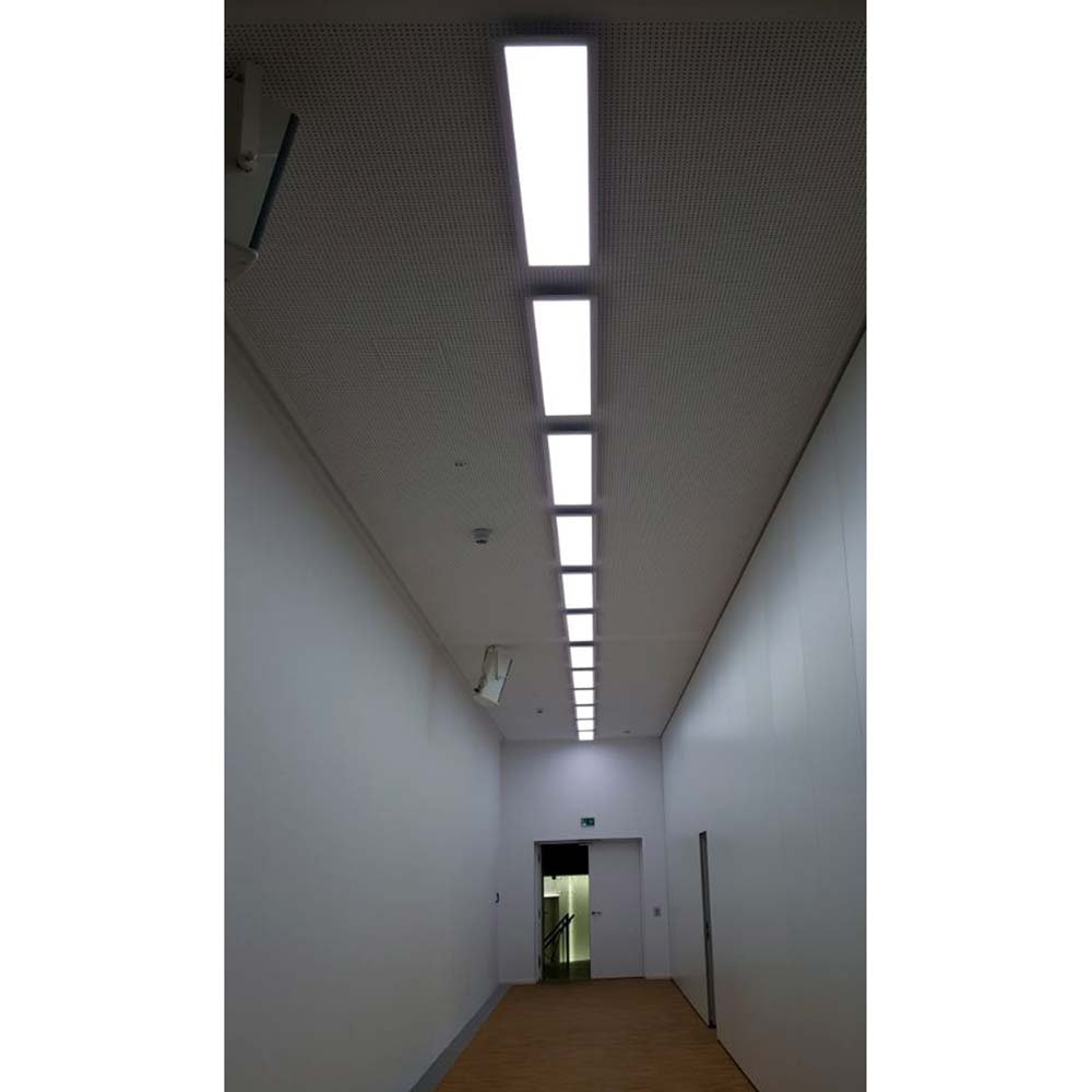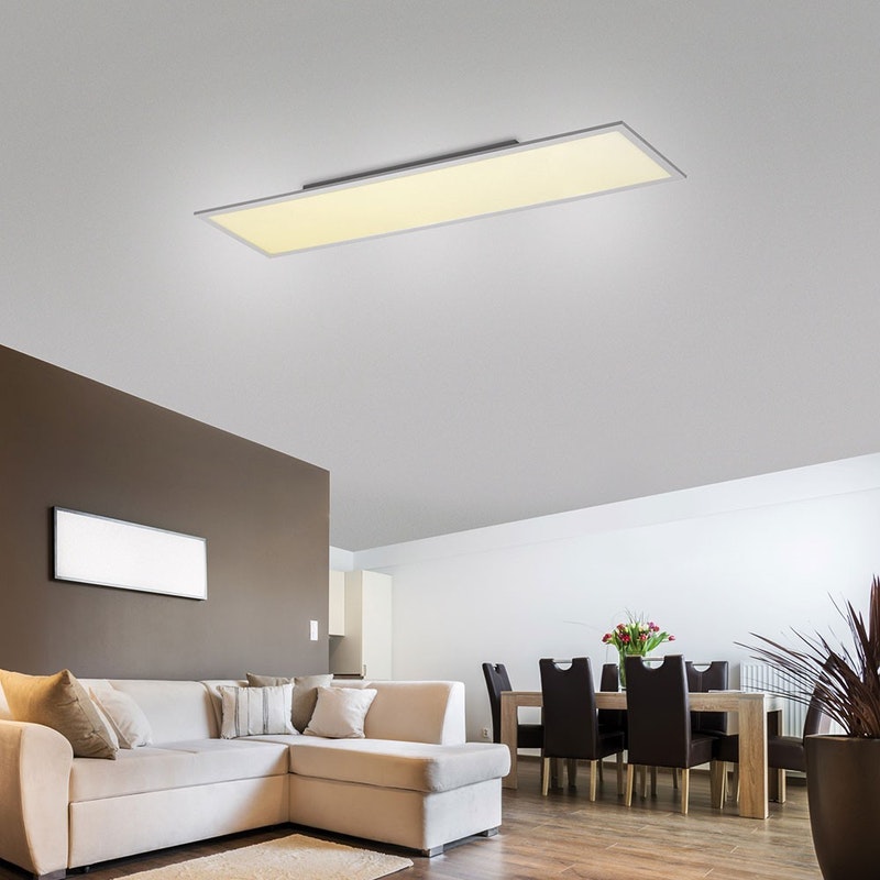 Die Deckenleuchte besticht durch Ihr schlicht, zeitloses Design. Das aus Stahl gefertigte Paneel in der Farbe Weiß hat eine Länge von 120 cm, eine Breite von 30 cm sowie eine Abhängung von 5,0 cm. Es wird inklusive einem festverbauten 41 Watt LED-Leuchtmittel geliefert. Das Leuchtmittel strahlt rund 3600 Lumen aus und wirkt mit einer Farbtemperatur von 4000 Kelvin neutralweiß. Durch das weiße Kunststoffglas gibt Sie ein blendfreies Licht ab.