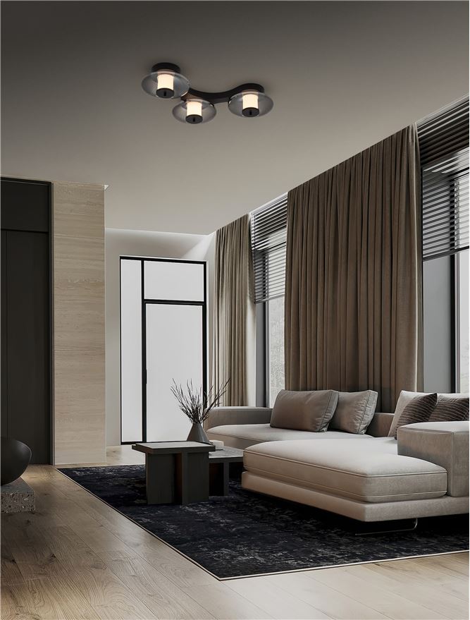 Skia LED-Deckenleuchte 3-flammig 24 W 3000 K Schwarz / Rauchgrau