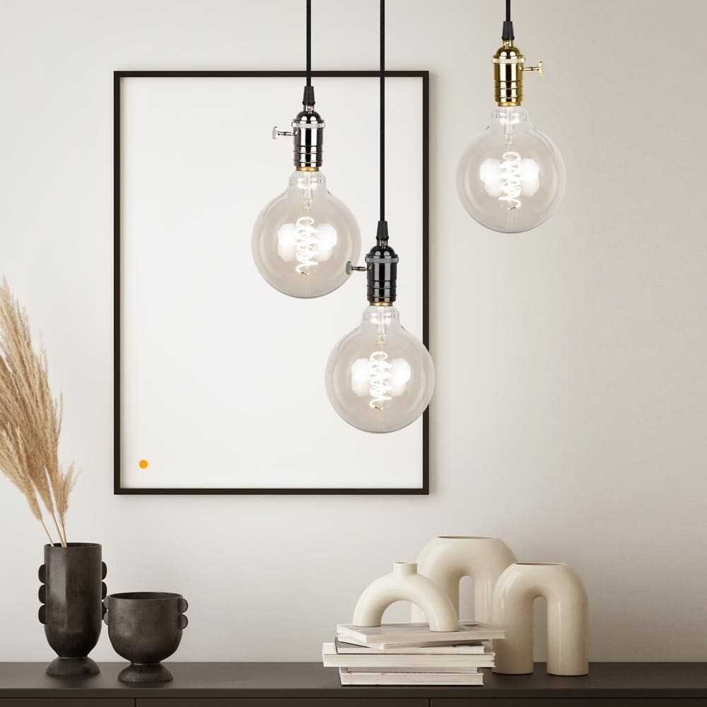 Kombinieren Sie nach Lust und Laune mehrere Socket Hängeleuchten miteinander und kreieren Sie so ein einzigartiges Ensemble. Die Vintage Hängeleuchte ist prädestiniert dafür, mehrere Leuchten miteinander zu kombinieren und mit unterschiedlichen Leuchtmitteln zum Blickfang über Esstischen, in Treppenhäusern oder über der Frühstückstheke zu werden. Warme Vintage-LED-Leuchtmittel sorgen für ein angenehmes Ambiente.