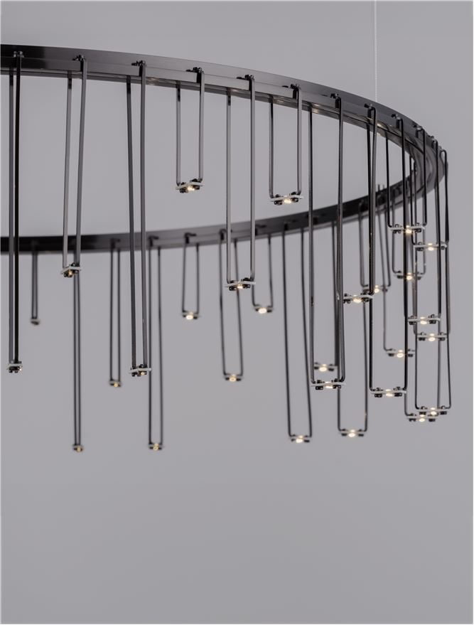 Die Stellar LED-Pendelleuchte von Nova Luce beeindruckt mit ihrer großzügigen Form und einem modernen, fast schwebenden Design. Mit einem Durchmesser von 65 cm setzt sie ein ausdrucksstarkes Statement über dem Esstisch, im Wohnzimmer oder in repräsentativen Eingangsbereichen.