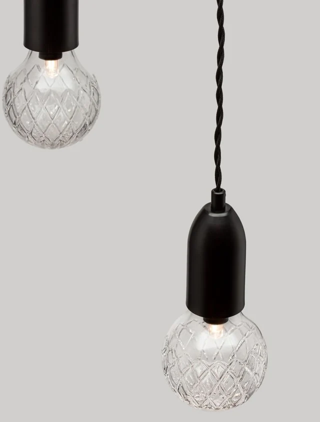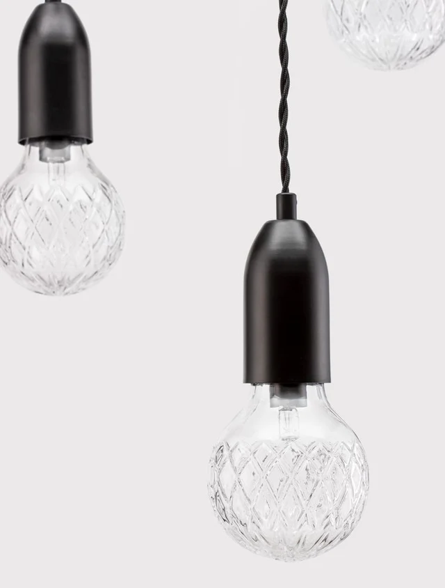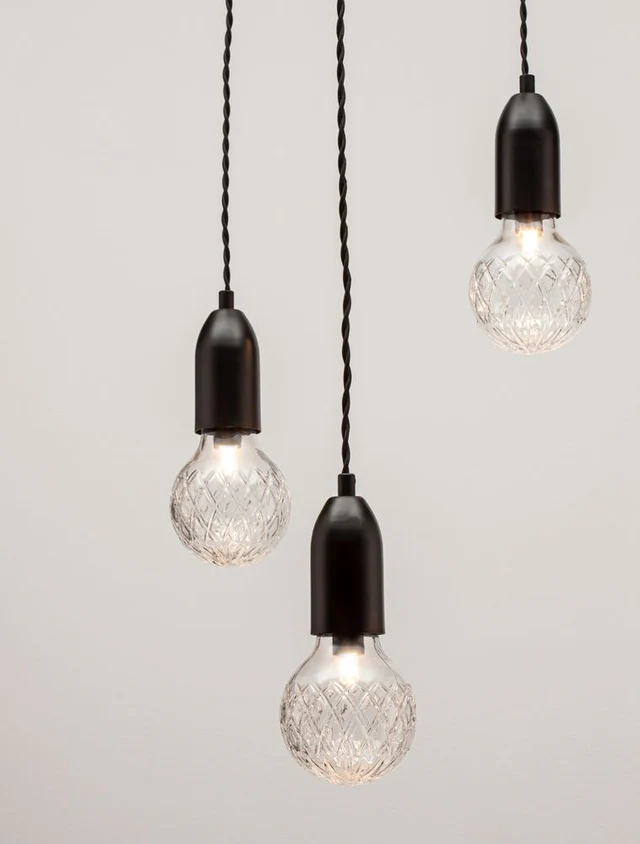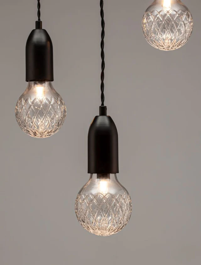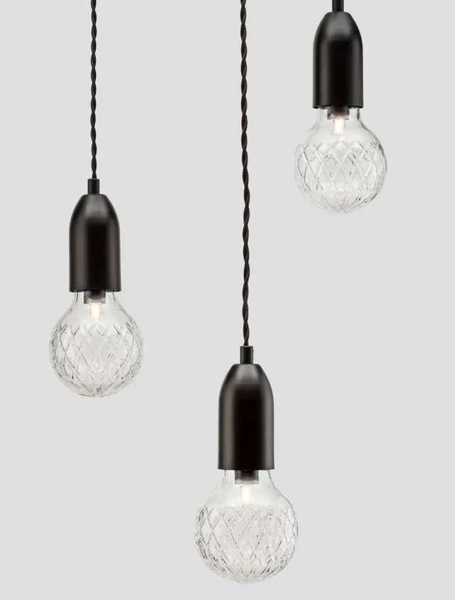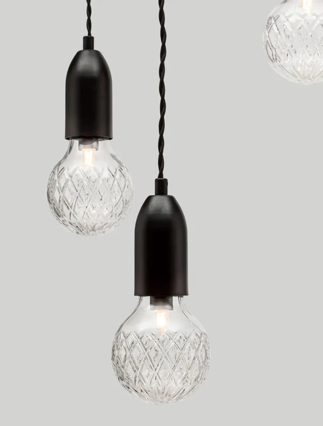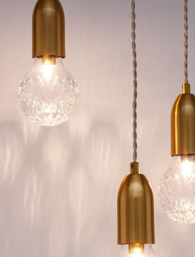 Jeder Schirm besteht aus handgeschliffenem Glas, das das Licht der G9-Leuchtmittel (nicht enthalten) sanft bricht und ein atmosphärisches, streuendes Umgebungslicht erzeugt. Die dezenten Aluminiumfassungen sind mit einem eingravierten Zierlogo versehen und verleihen der Leuchte zusätzliche Raffinesse.