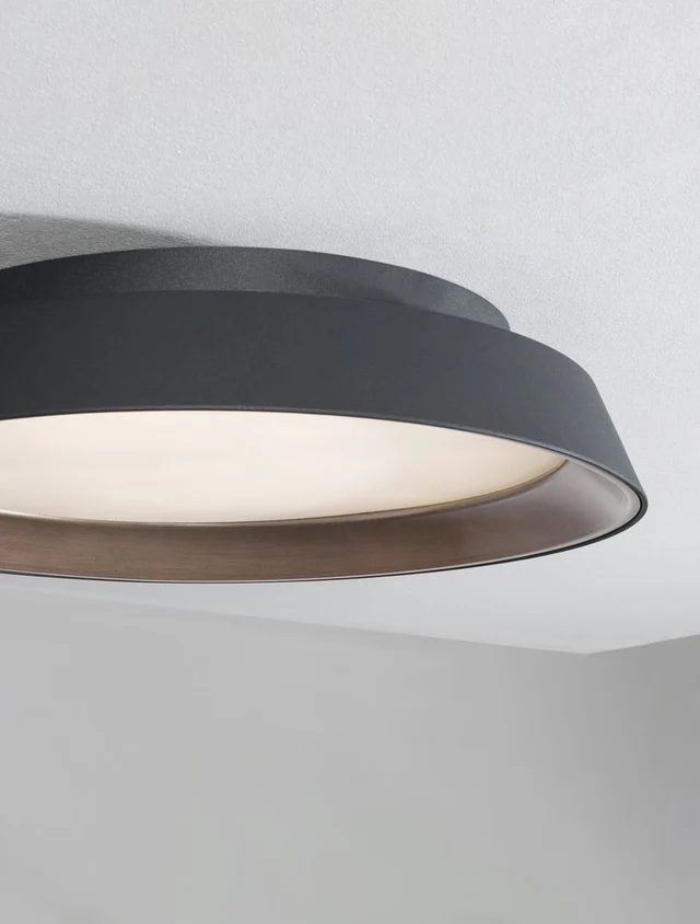 Mit einem Durchmesser von 45 cm, einer schlanken Aufbauhöhe von nur 9,5 cm und einem Gewicht von 2,7 kg ist VELA ideal für moderne Innenräume mit flacher Decke. Ihre Energieeffizienzklasse F kombiniert langlebige Technik mit einem bewussten Energieeinsatz.