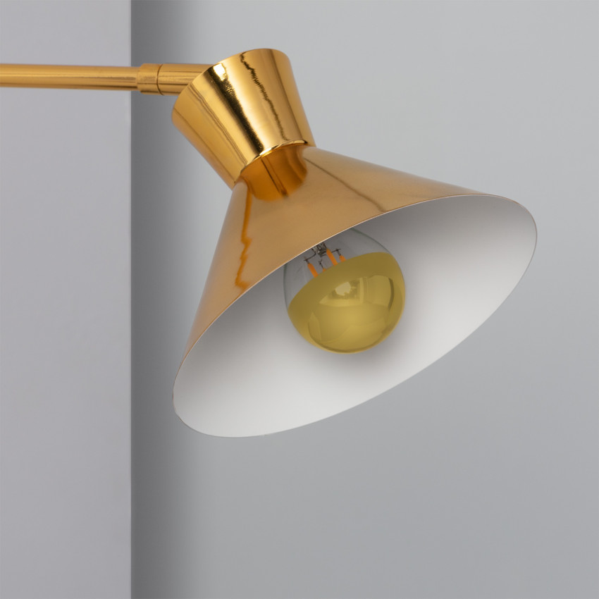 Wir verlieben uns total in den Vintage-Look dieser LOUGA Wandleuchte. Aus intensiv goldfarbenem Metall gefertigt, hat diese Leuchte einen Art-Deco-Look, der als hypertrendig gilt. Wir lieben: diese beiden Diffusoren, die Ihnen ein weiches und homogenes Licht geben. Das von dieser Wandlampe abgegebene Licht hängt von der von Ihnen installierten E14-LED-Lampe ab.