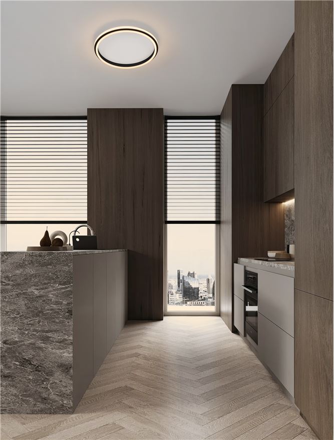 Die WILLOW Deckenleuchte mit einem Durchmesser von 60 cm vereint stilvolle Zurückhaltung mit beeindruckender Lichtleistung. Der hochwertige Aluminiumrahmen in matt-goldener Ausführung verleiht dieser Leuchte eine elegante Ausstrahlung, ohne aufdringlich zu wirken.