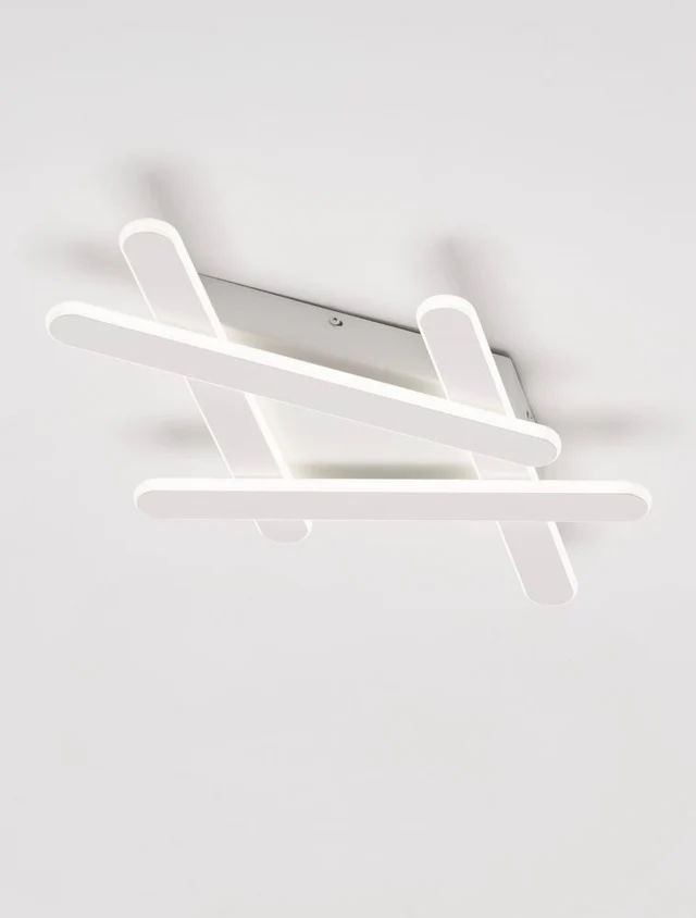 Die LED-Deckenleuchte Willow von Nova Luce vereint moderne Eleganz mit starker Lichtleistung. Vier weiß lackierte, geschwungene Metallstreifen kreuzen sich harmonisch und bilden ein dekoratives Designelement. Ein opaler Acryldiffusor sorgt für ein weiches, gleichmäßiges Licht ohne Blendung.