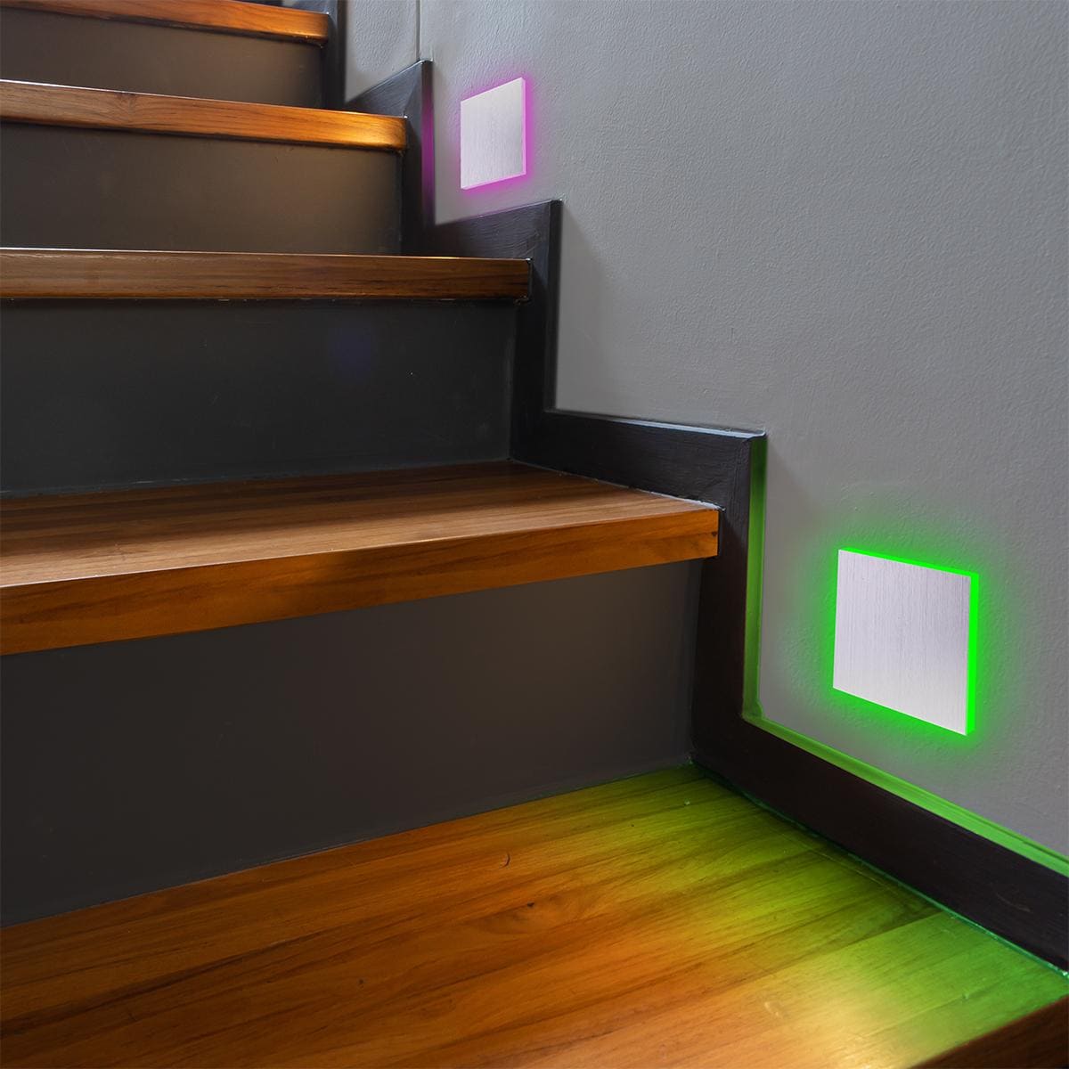 Eclairage d’escalier LED 230V marchepied carré noir mat IP44 En raison de la classe de protection IP44, cet éclairage d’escalier
