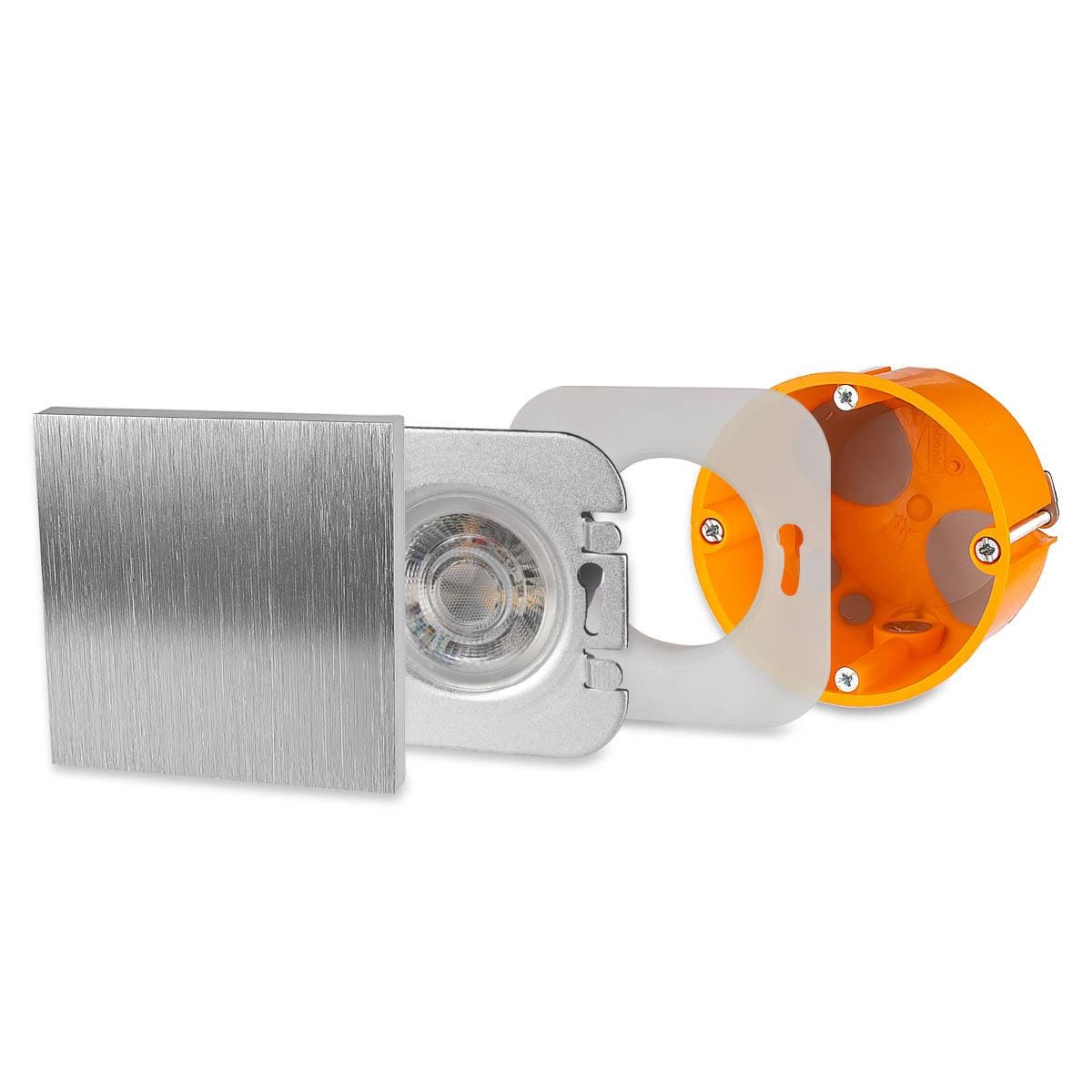 Applique murale encastrable carré 5W Alu brossé 230V pour escalier IP44