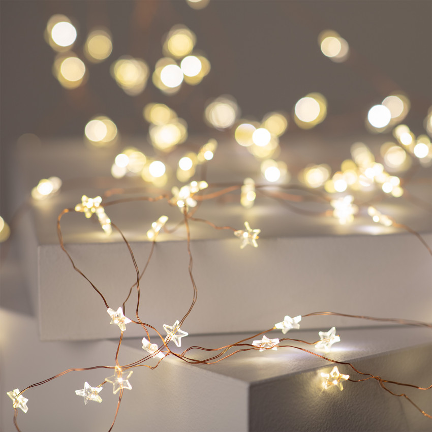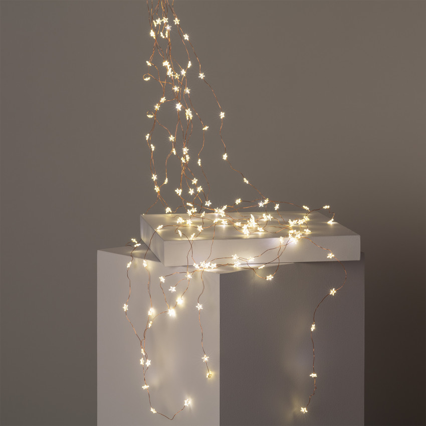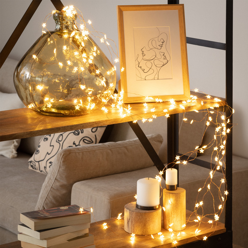 Elle se compose de 200 étoiles en mini-lumières LED, les faisant ressortir grâce à sa lumière chaude. Elle a une longueur de 2 mètres et un câble d’alimentation de 5 mètres de long. Pour son fonctionnement, il suffit de la brancher sur n’importe quelle prise de courant et elle est prête à éclairer n’importe quel coin ou recoin de la maison.
