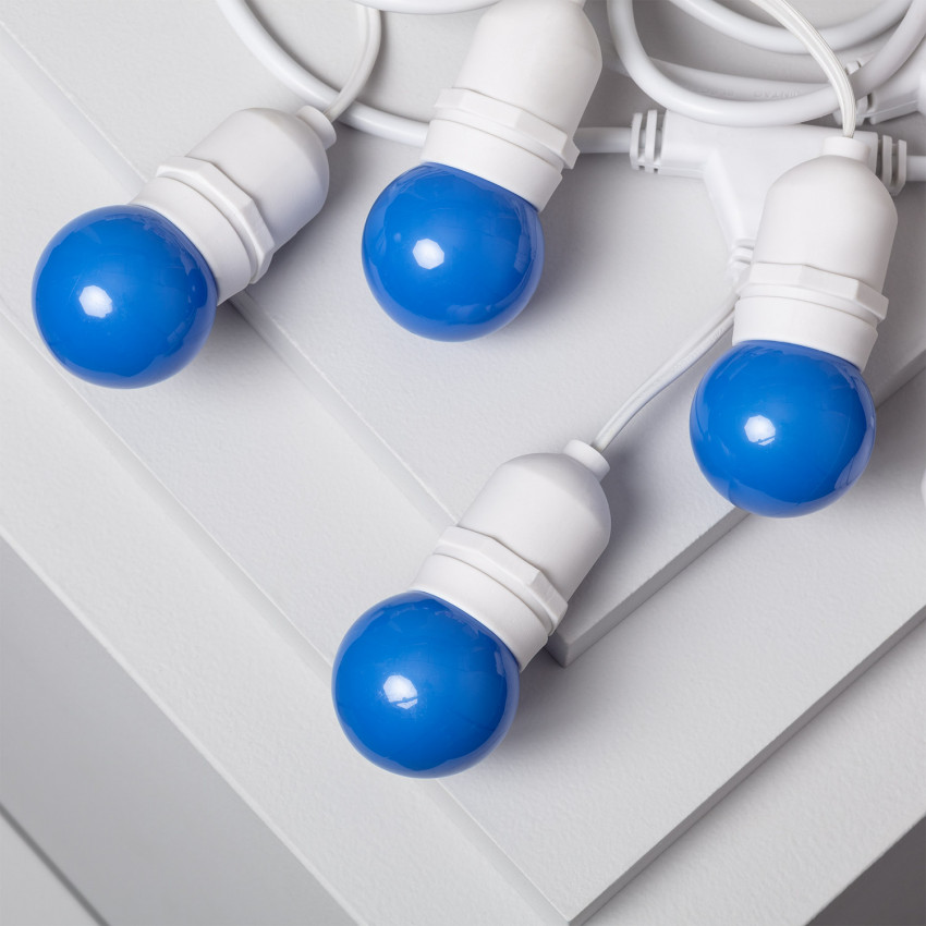 Ce Kit Guirlande Waterproof 5.5m Blanche + 8 Ampoules LED E27 G45 3W est un élément largement utilisé dans l’éclairage décoratif extérieur. La guirlande a des connecteurs aux extrémités qui peuvent être utilisés à la fois comme alimentation ou pour brancher les guirlandes en série. vous pourrez unir jusqu’à 6 guirlandes formant une chaîne de 30 mètres de long et 48 ampoules. Entre chaque ampoule se trouve une longueur de 60cm.