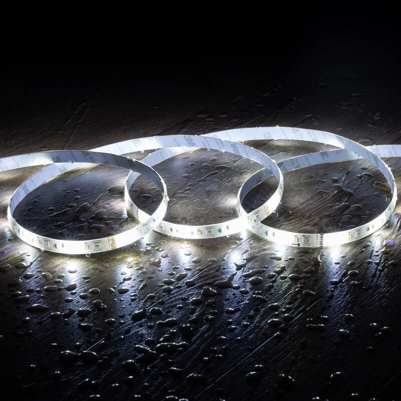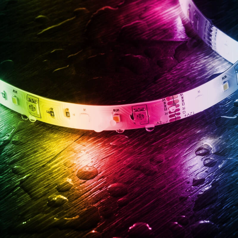 - Couleur et polyvalence : Le ruban utilise la technologie RGBWW, qui combine des LEDs RGB (Rouge, Vert, Bleu) avec des LEDs blanches chaudes et blanches pures. Cette configuration permet de créer une large palette de nuances, allant des couleurs vives aux tonalités de blanc chaud, neutre ou froid, pour un éclairage totalement personnalisé et adaptable à chaque ambiance.