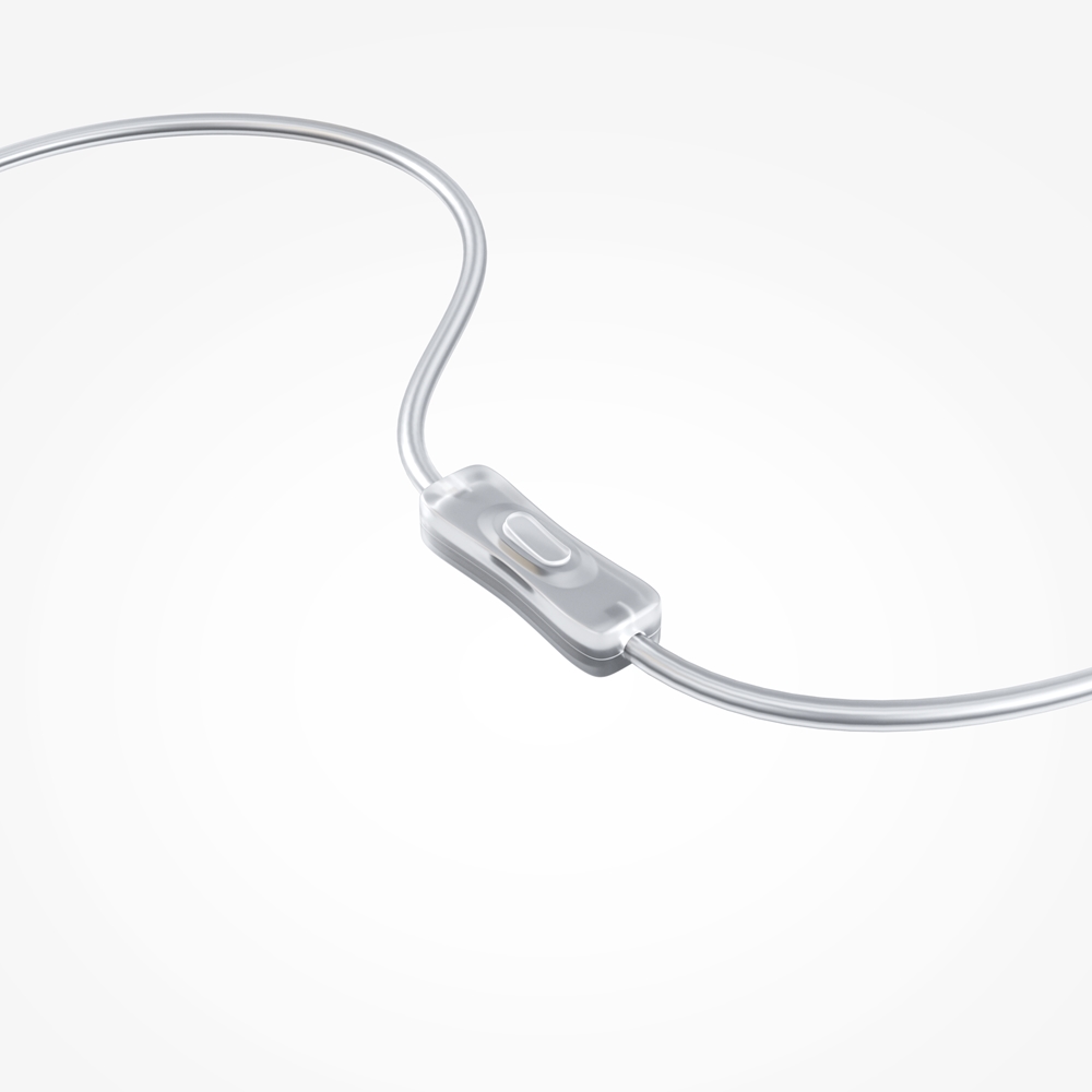 Au-dessus de la pierre, un globe en verre blanc satiné (Ø 150 mm) diffuse une lumière douce, régulière et non éblouissante, idéale en éclairage d’ambiance. La lampe fonctionne avec une ampoule LED G9 jusqu’à 9 W et se commande simplement grâce à un interrupteur marche/arrêt sur le câble.