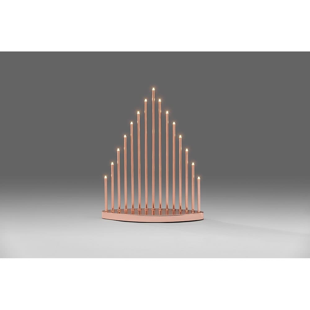 Noël et Avent – temps de moments contemplatifs et d’histoires et de contes. Ce lustre électrique en métal de Konstsmide a aussi une histoire bien particulière à raconter : son prédécesseur a vu le jour dans la maison Konstsmide au début des années 1940. Cet élément décoratif élégant s’inscrit dans la lignée directe des premiers bougeoirs de série.
