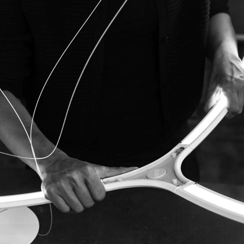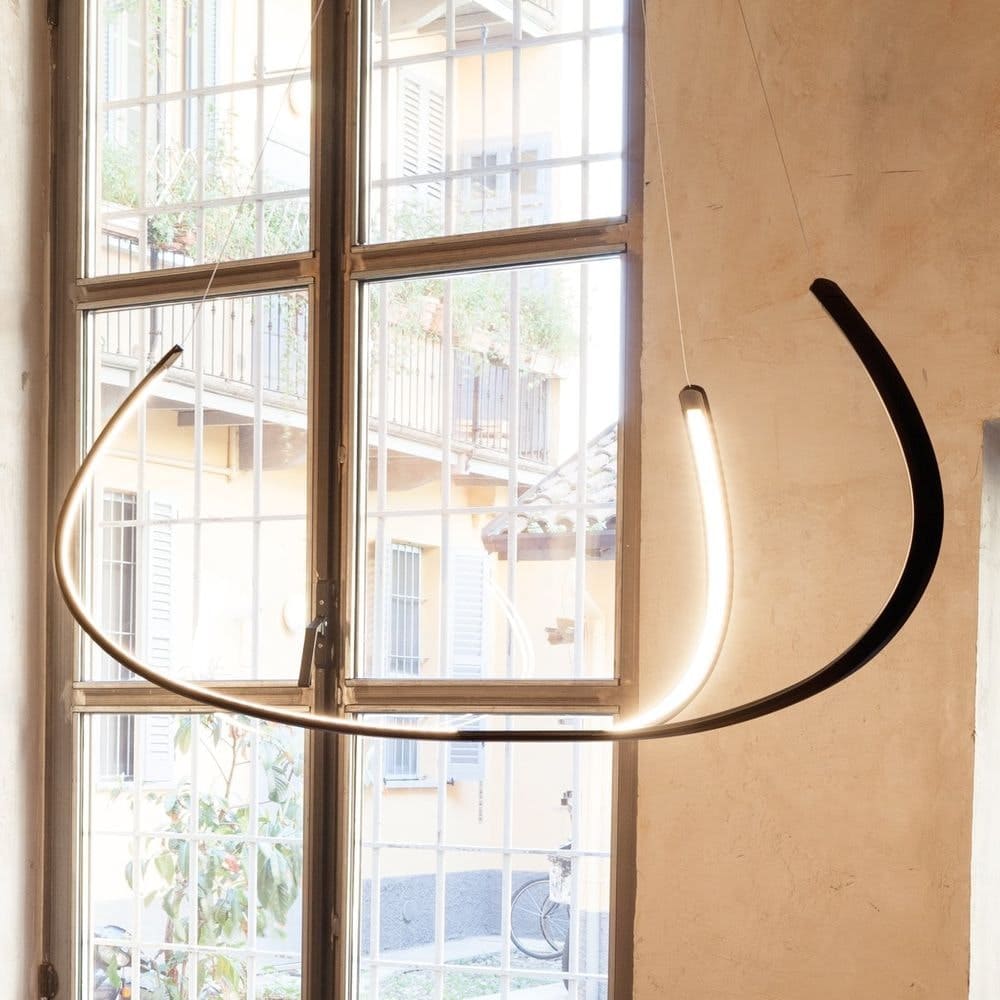 La Nemo Alya suspension LED futuriste Ø 100cm est une suspension LED fine avec une structure à trois bras en aluminium. Sa forme incurvée confère à Alya une sensation d’apesanteur et de magie.