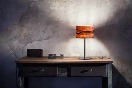 Élégance naturelle et design raffiné : la lampe Arboreus en noyer satiné séduit par sa surface douce et veloutée, ses