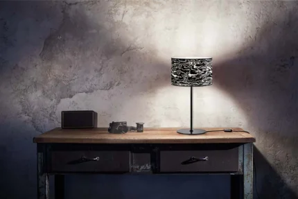 Petite lampe de table design, idéale pour les espaces réduits ou les coins étroits. Son abat-jour est fabriqué à la