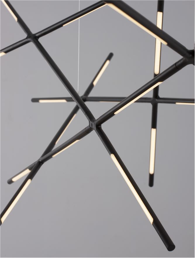 La combinaison de métal noir et diffuseur en acrylique garantit une diffusion douce et non éblouissante de la lumière. Avec 21 sources LED intégrées, la RACCIO est un luminaire premium idéal pour les intérieurs modernes.