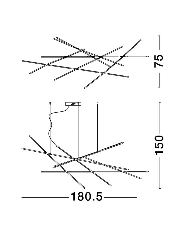 Avec une longueur généreuse de 180,5 cm et une largeur de 75 cm, elle constitue un véritable point focal au-dessus d’une grande table à manger. La hauteur est réglable jusqu’à 200 cm, permettant une adaptation parfaite à votre intérieur.