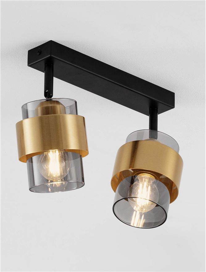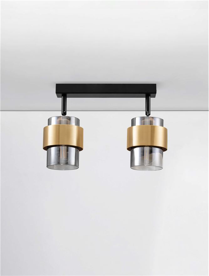Compact, affirmé et très polyvalent, le plafonnier SIANNA 2 lumières apporte un esprit rétro chic en noir et or, tout en restant résolument contemporain. Les deux spots, montés sur une base fine, sont orientables pour diriger la lumière exactement là où vous en avez besoin : coin canapé, mur de cadres, couloir, ou zone de travail dans la cuisine et le bureau.