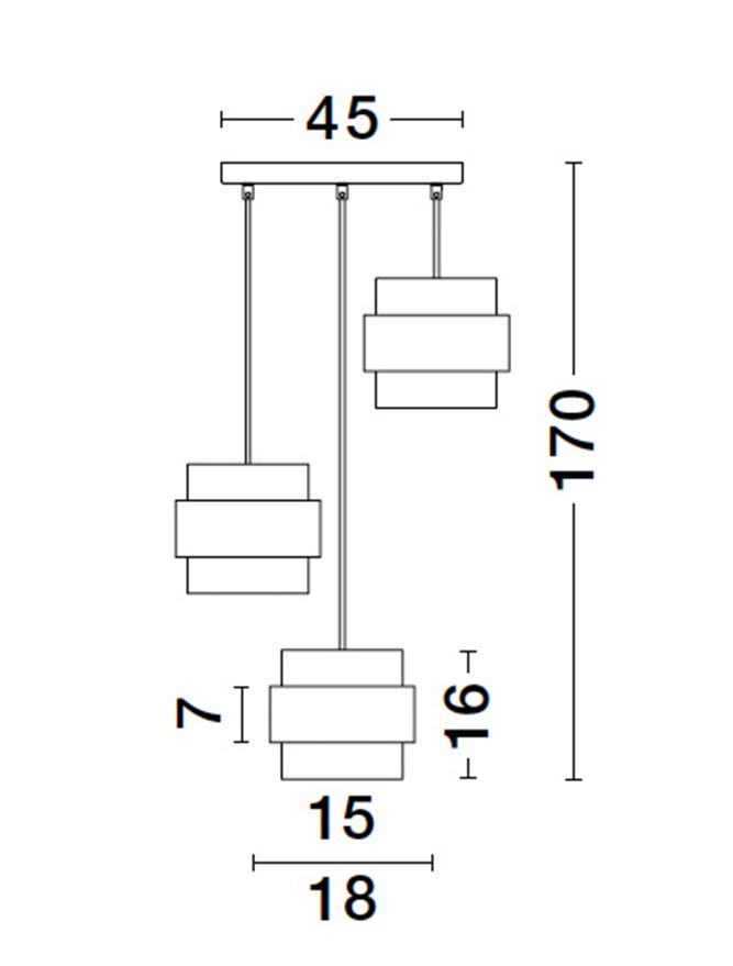 - Infos techniques : 3× E27 (ampoules non incluses), IP20, classe I, 200–230 V, dimmable selon ampoules & variateur.