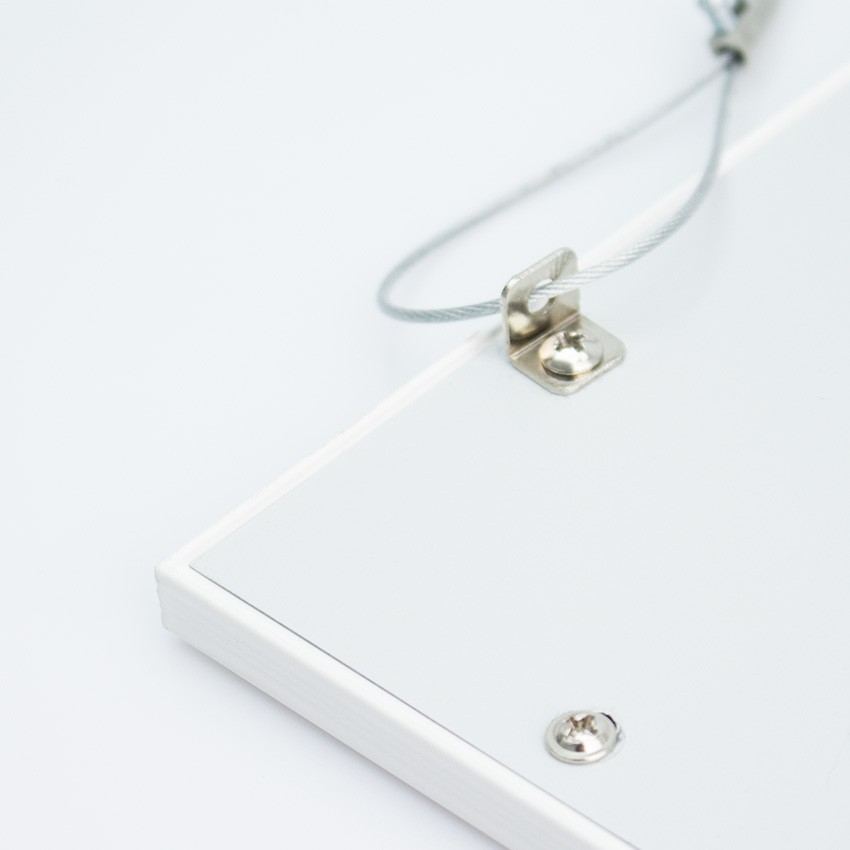 Le panneau LED émet une lumière blanche neutre (6 000 Kelvin) avec 3 200 lumens et est donc très bien adapté pour l’éclairage efficace des lieux de travail, des bureaux ou des cabinets médicaux. La zone éclairée d’environ 60 par 30 cm est encadrée d’un discret cadre argenté