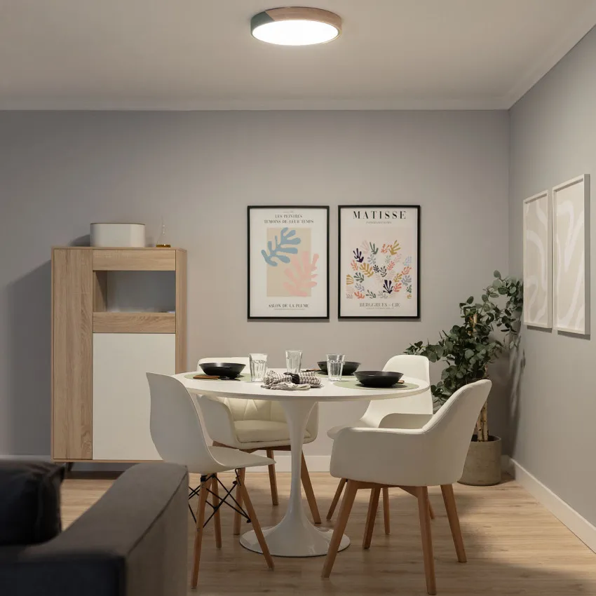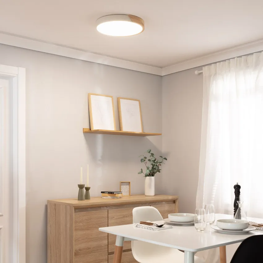 Le Plafonnier LED CCT Sélectionnable RONDO 24W Ø418 mm en Bois est largement utilisé dans tous types de pièces et il est extrêmement simple à installer. Sa lumière peut varier d’un blanc chaud et chaleureux à un blanc froid très lumineux pour adapter la pièce aux besoins désirés. De plus, il apportera une touche colorée et dynamique à vos pièces.