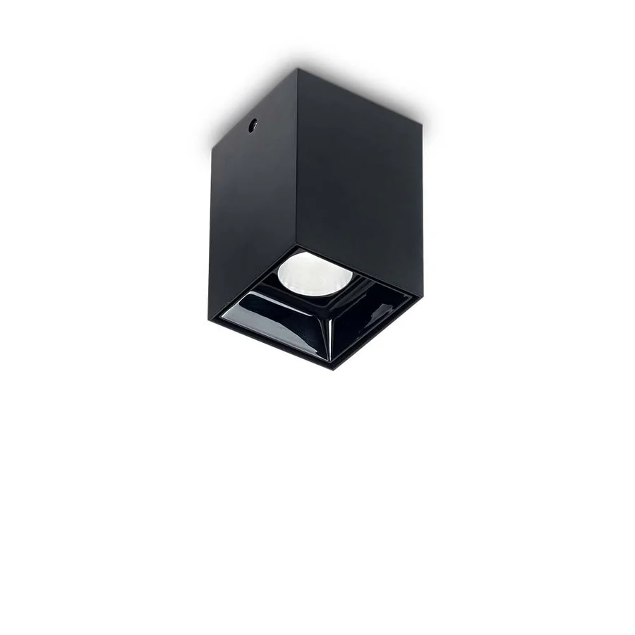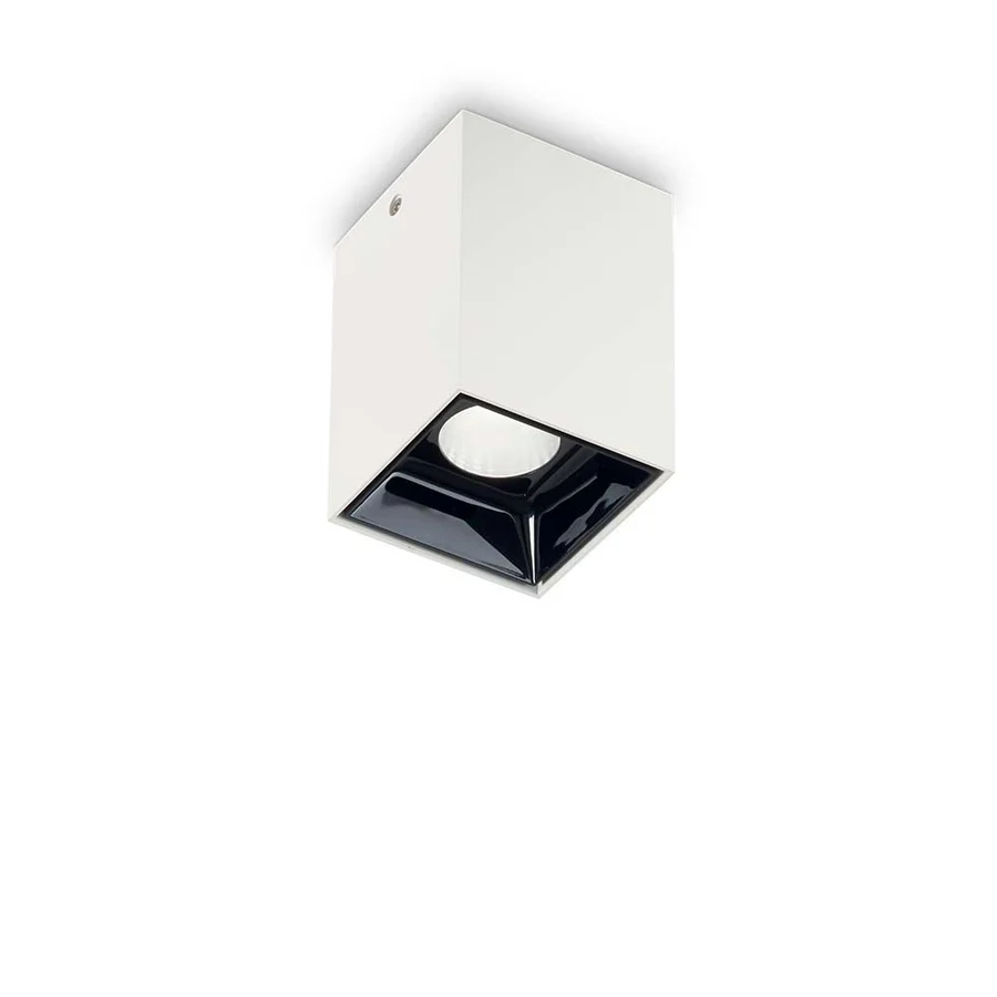 Le plafonnier LED Nitro de Ideal Lux associe modernité et praticité. Son corps carré en aluminium robuste, avec une finition mate en blanc ou en noir, est élégant et discret. L’intérieur en plastique brillant noir apporte une touche contemporaine.