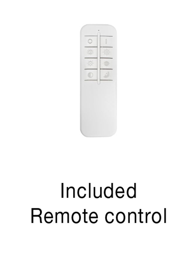 Doté d’une source LED intégrée de 40 watts, le luminaire diffuse une intensité lumineuse allant jusqu’à 1964 lumens. Grâce à la technologie CCT, la température de couleur est réglable à l’aide de la télécommande fournie : choisissez entre une lumière blanc chaud (2700 K), blanc neutre (3500 K) ou blanc froid (5000 K) selon vos envies. L’intensité lumineuse est également variable, pour une ambiance parfaitement adaptée à chaque moment.