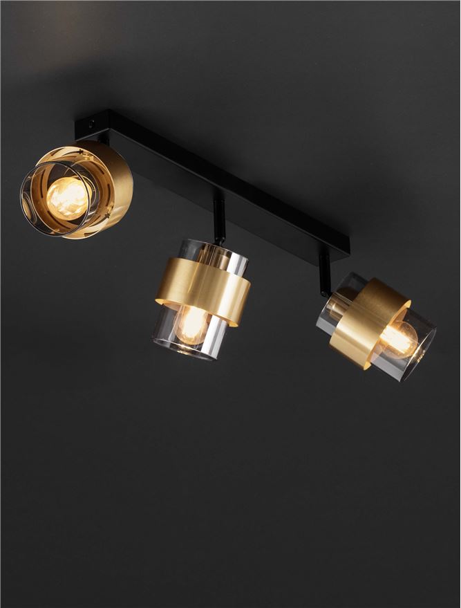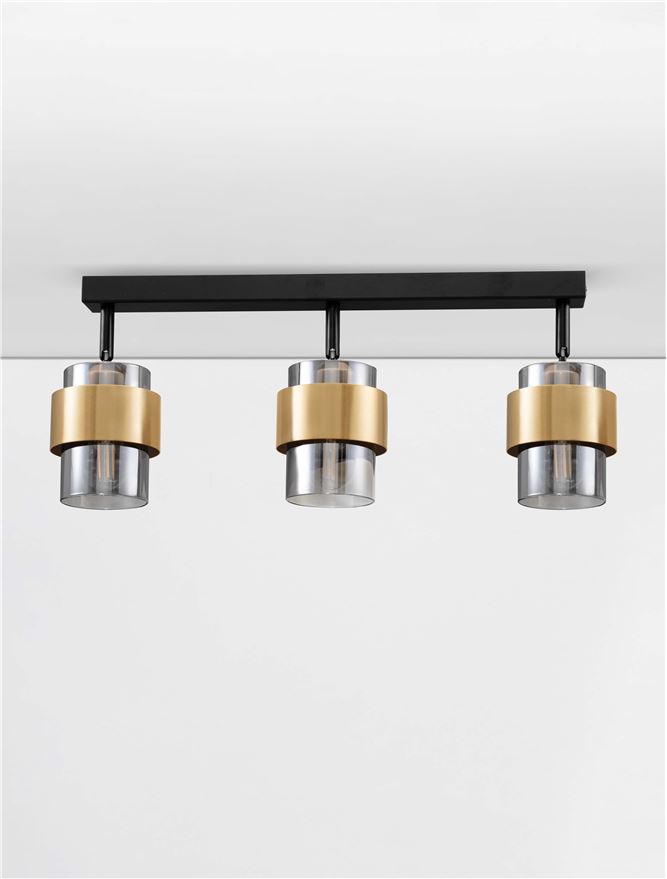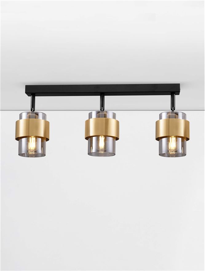 Le plafonnier SIANNA séduit par son design linéaire de 70 cm, pensé pour des intérieurs modernes à la recherche de caractère sans froideur. Le métal noir mat structure la silhouette, tandis que les abat-jour en verre fumé diffusent une lumière douce et agréable. Les anneaux en laiton viennent signer le design et apportent une touche raffinée et premium.