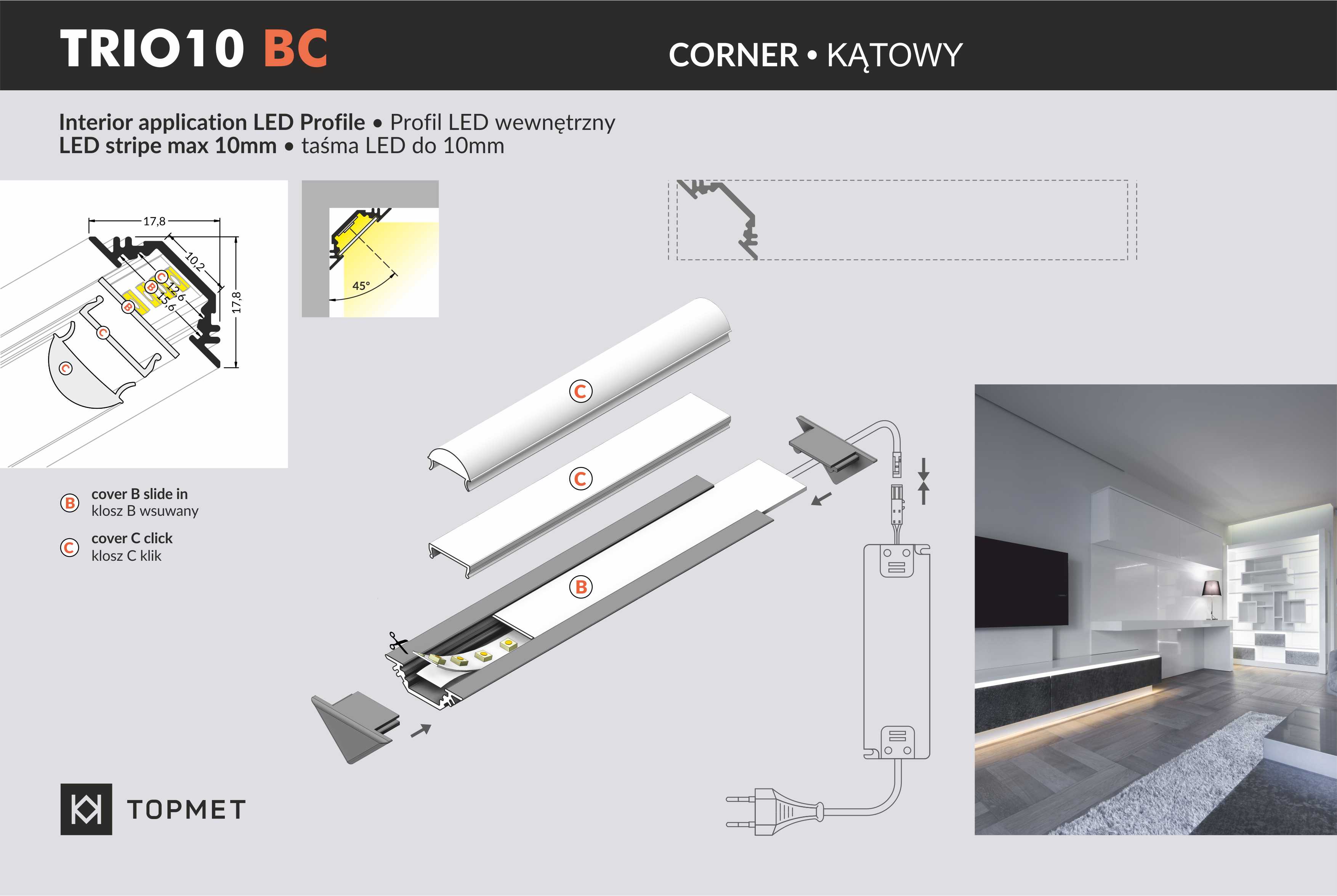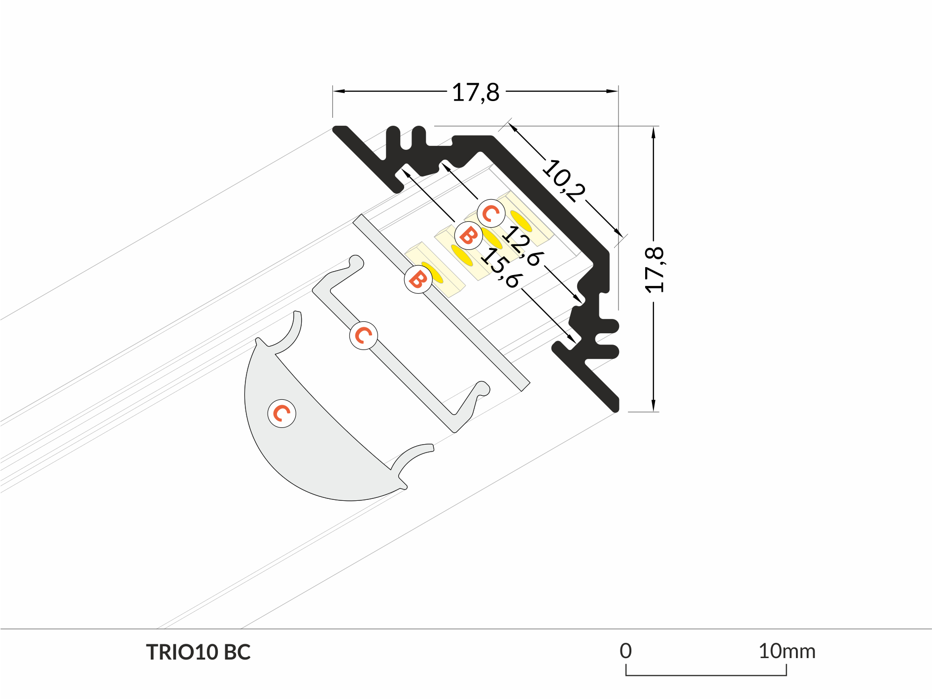 Les profilés d’angle en aluminium sont idéaux pour rendre l’éclairage LED attrayant et professionnel. Le Profilé aluminium d’angle CORNER10 BC/UX