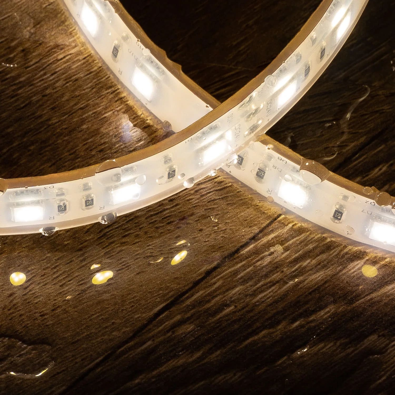 L’électronique du Ruban LED est recouverte de résine époxy. Il est parfaitement protégé contre les chocs et l’humidité, ce qui donne un indice de protection IP68 qui rend ce type d’éclairage LED parfait non seulement pour les espaces extérieurs mais aussi sous l’eau.