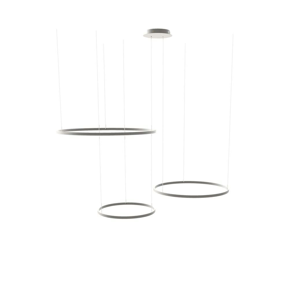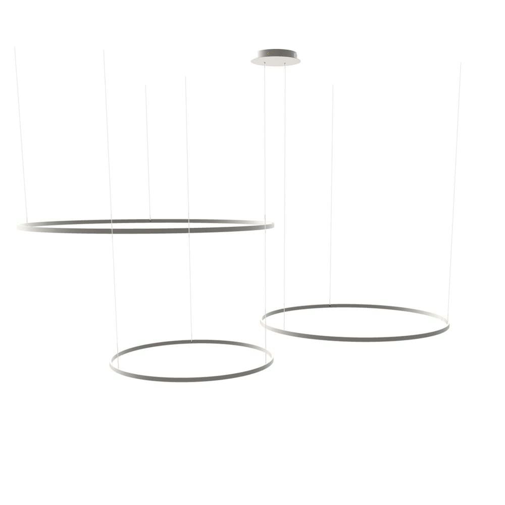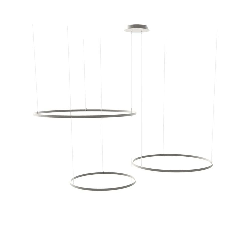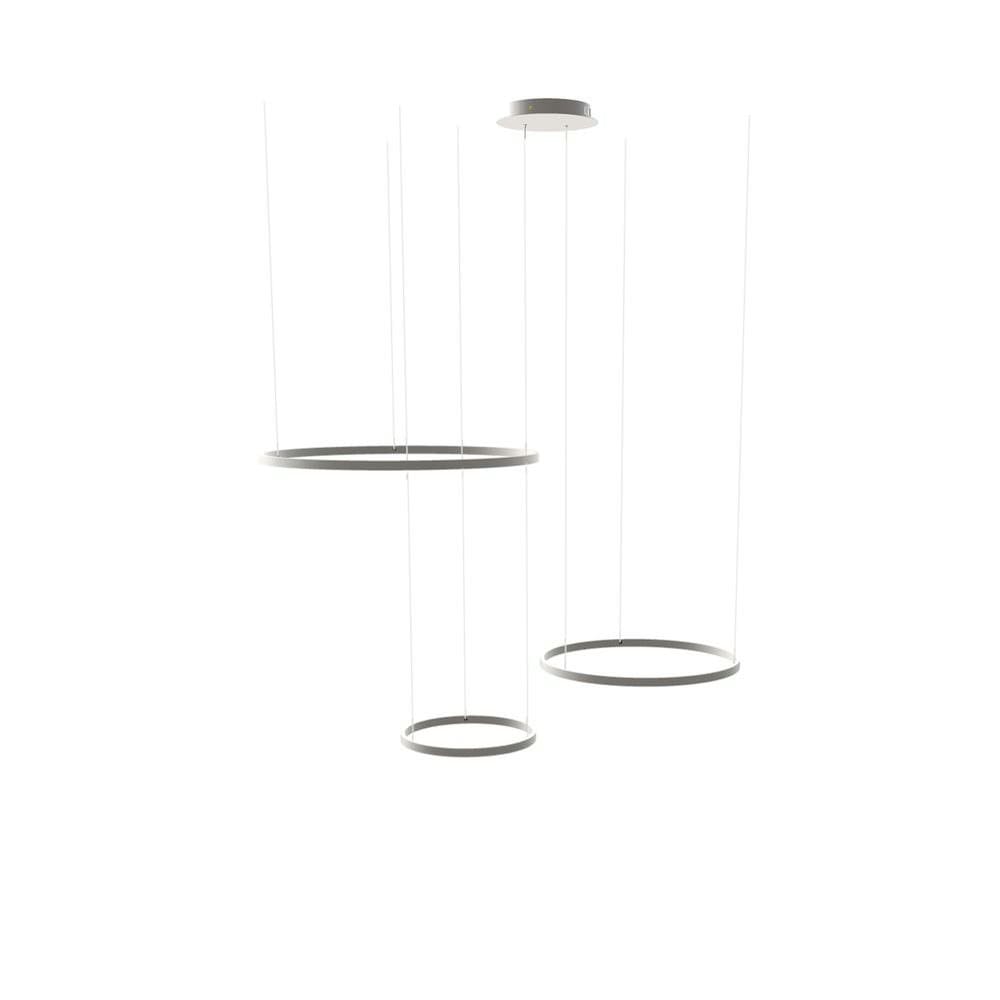 La combinaison de suspensions à 3 cercles excentriques de s.luce représente la symbiose parfaite entre élégance, polyvalence et fonctionnalité. Conçu pour s’intégrer harmonieusement dans n’importe quel environnement, cet ensemble est idéal pour les galeries, les cages d’escalier et les tables. La disposition centrée des anneaux crée un jeu de lumière harmonieux et équilibré, apportant une atmosphère particulière à chaque pièce.