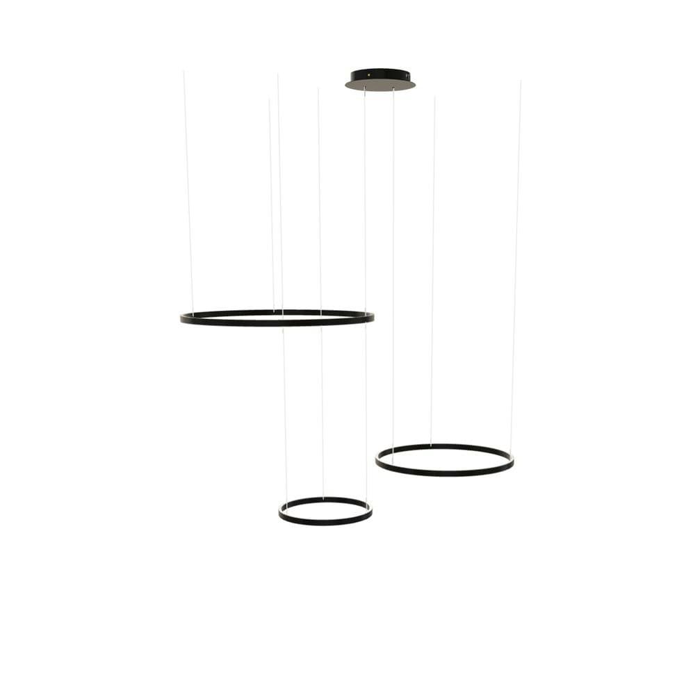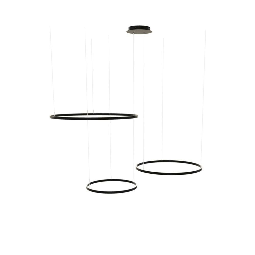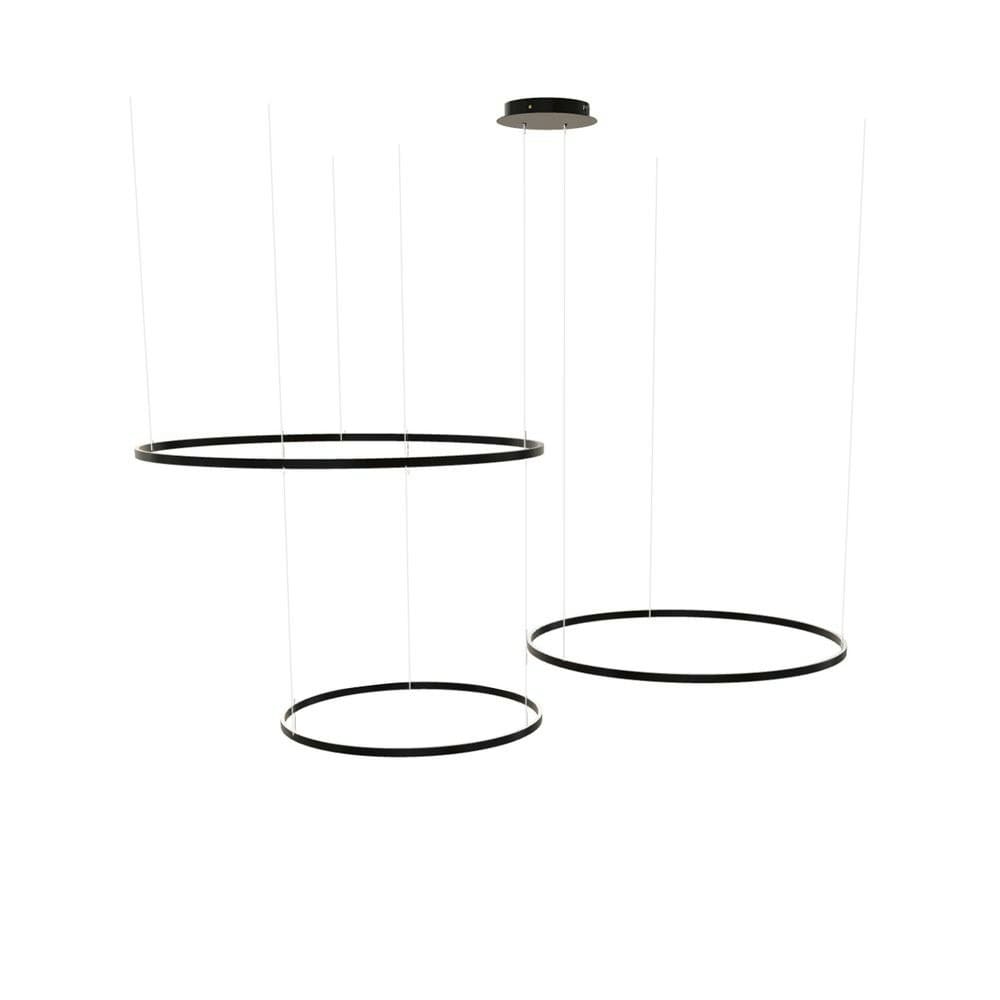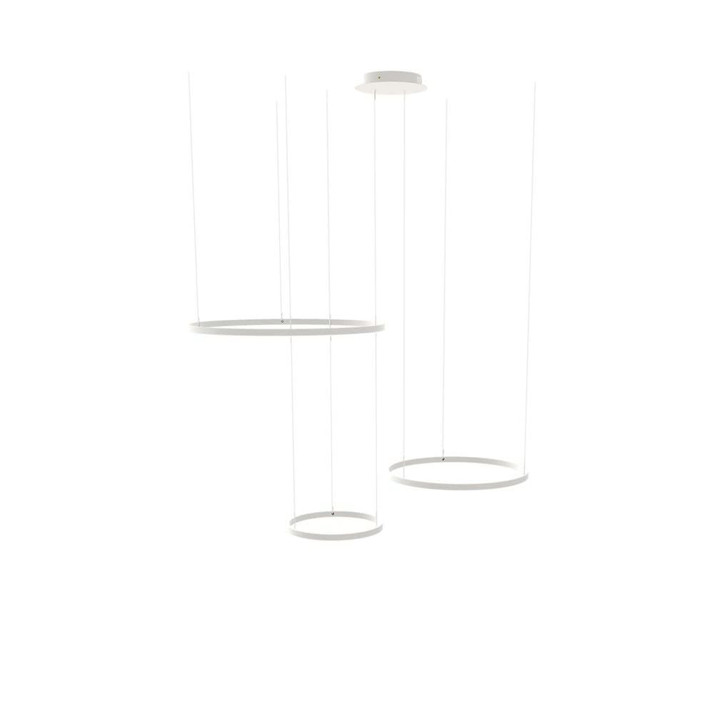 La combinaison de suspensions à 3 cercles excentriques de s.luce représente la symbiose parfaite entre élégance, polyvalence et fonctionnalité. Conçu pour s’intégrer harmonieusement dans n’importe quel environnement, cet ensemble est idéal pour les galeries, les cages d’escalier et les tables. La disposition centrée des anneaux crée un jeu de lumière harmonieux et équilibré, apportant une atmosphère particulière à chaque pièce.