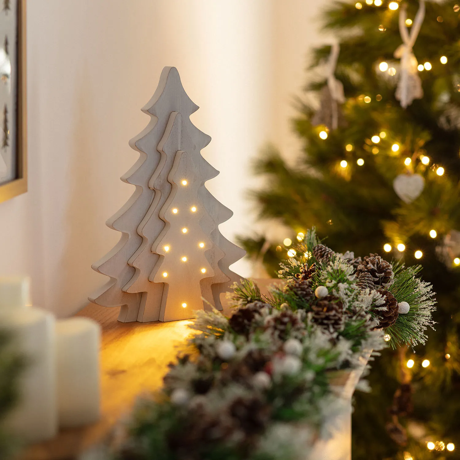 Sapin de Noël en bois avec batterie
