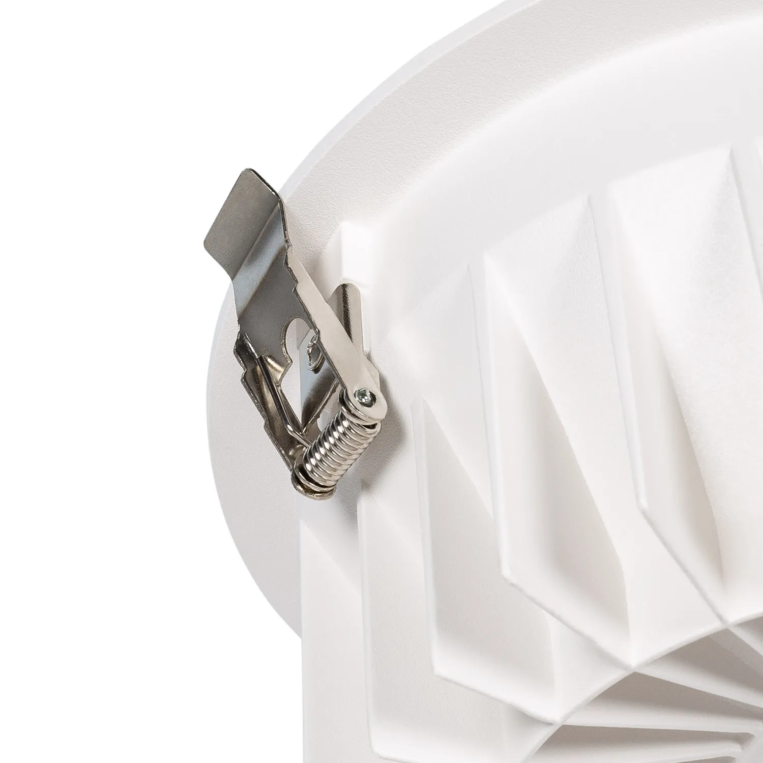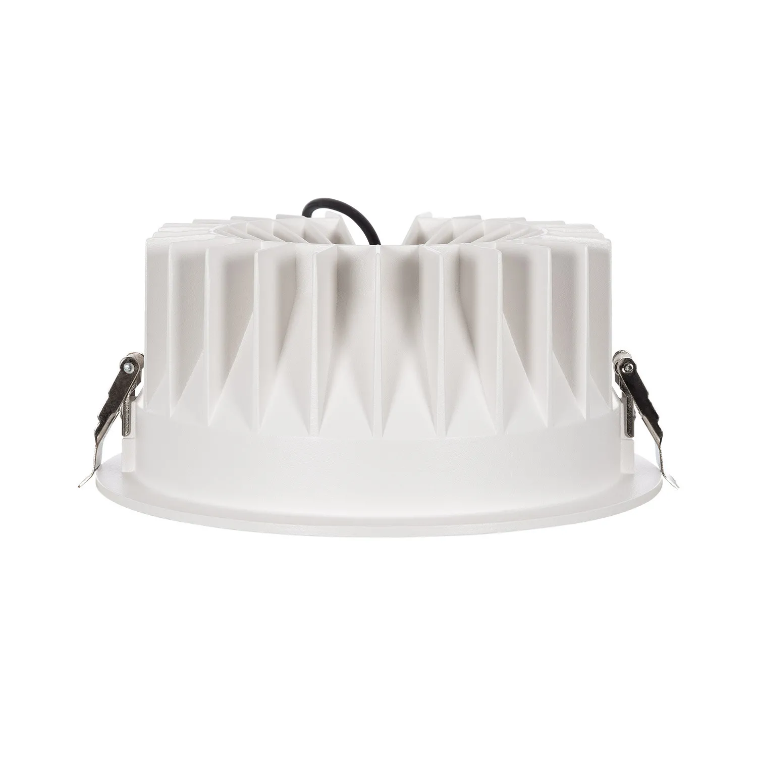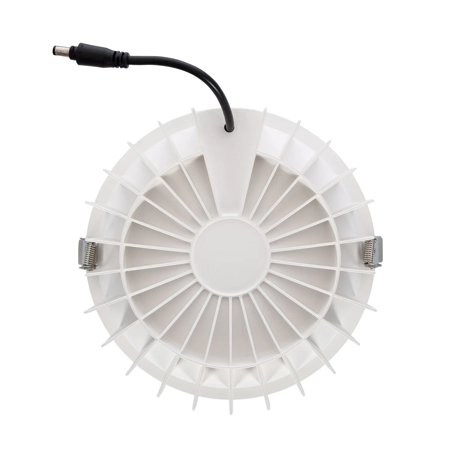 Fabriqué en aluminium avec une finition blanche et argentée très élégante. Son installation est très simple et ne nécessite qu’une coupe de Ø215 mm sur la surface où il sera encastré. Son CRI 90 permet une perception précise des couleurs, ce qui est également parfait pour les studios et locaux commerciaux.