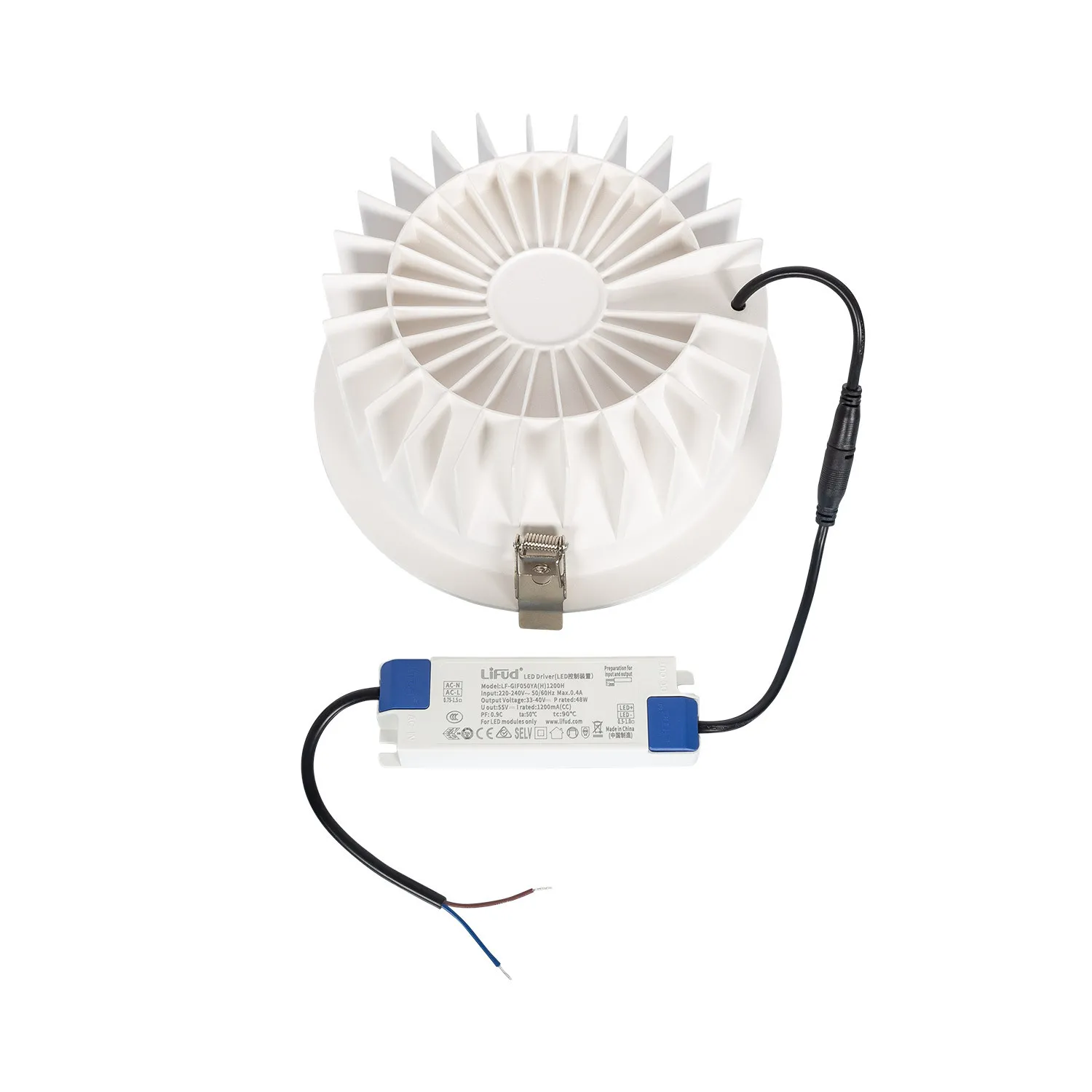 Le Spot Downlight LED rond 50W CRI90 LIFUD coupe Ø215 mm IP20 mm est un produit très polyvalent qui allie bonnes performances et économies d’énergie. De plus, il intègre un driver de la prestigieuse marque « LIFUD« , pionnière dans la fabrication de Drivers LED de grande qualité.