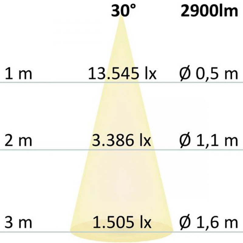 variation : 20-100 % de la puissance lumineuse avec variateur TRIAC | Recommandation : utiliser un actionneur de variation de