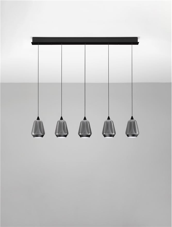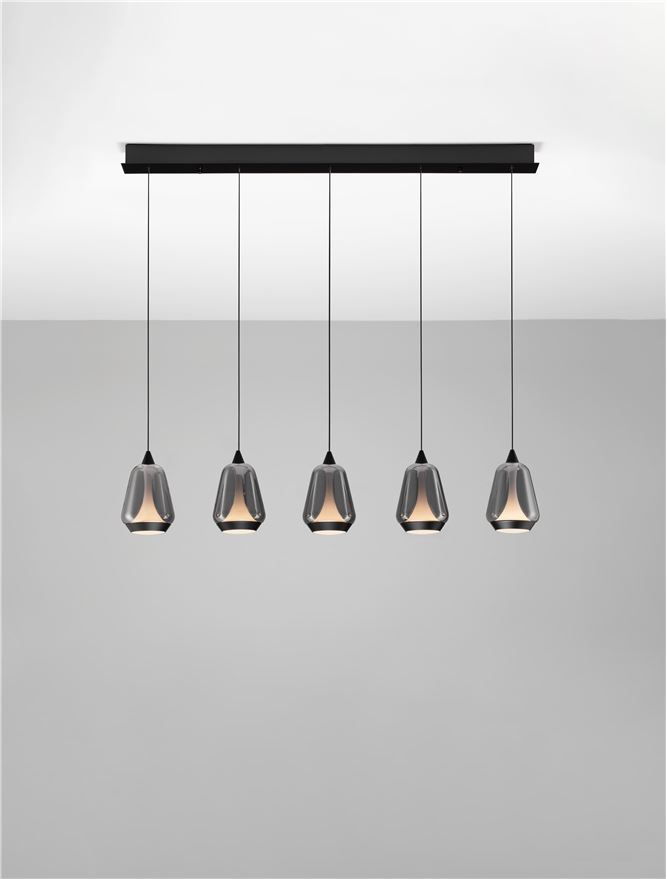 La suspension LED ALISH 37W 5 lampes de Nova Luce séduit par son design linéaire moderne et sa finition élégante en métal noir mat associée à un verre fumé raffiné. Elle apporte une touche contemporaine et sophistiquée au-dessus d’une table à manger ou d’un îlot de cuisine.