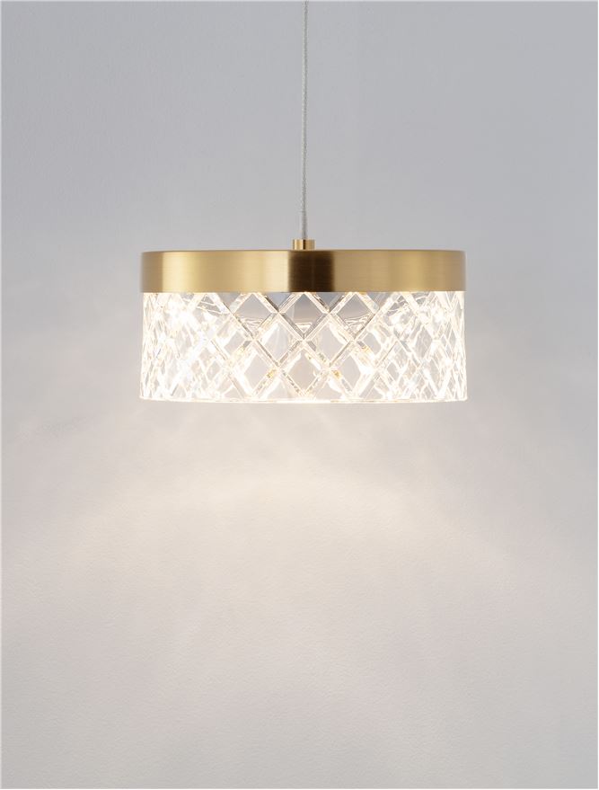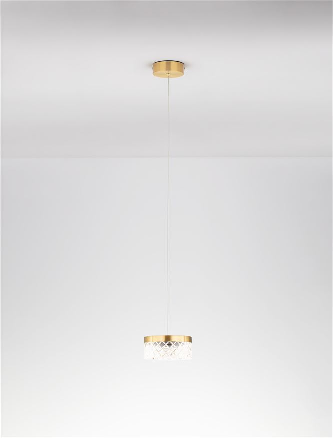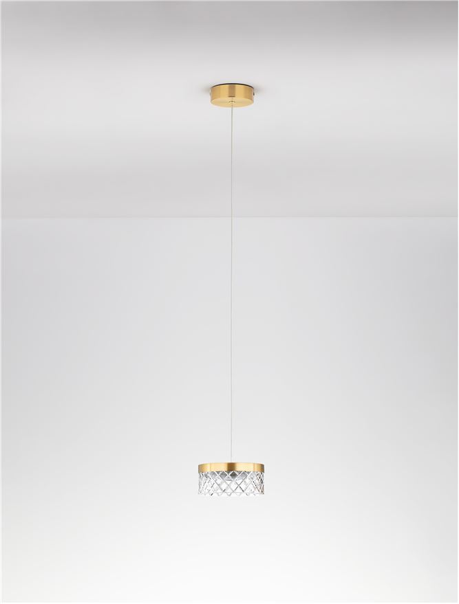 Ses dimensions généreuses (Ø 15cm, hauteur 150 cm) et sa finition dorée exclusive confèrent à cette suspension un caractère unique qui sublime chaque intérieur.