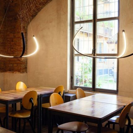 Elle confère une personnalité et elle marque la différence dans la décoration de vos séjours et locaux à la mode, avec cette famille de lampes suspendues.