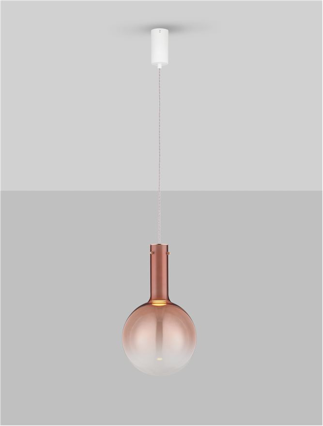 Son abat-jour en verre rose (pink glass) diffuse une lumière chaleureuse et apaisante. Les détails en métal doré associés à la base plafond en métal blanc mat soulignent son style moderne et intemporel.